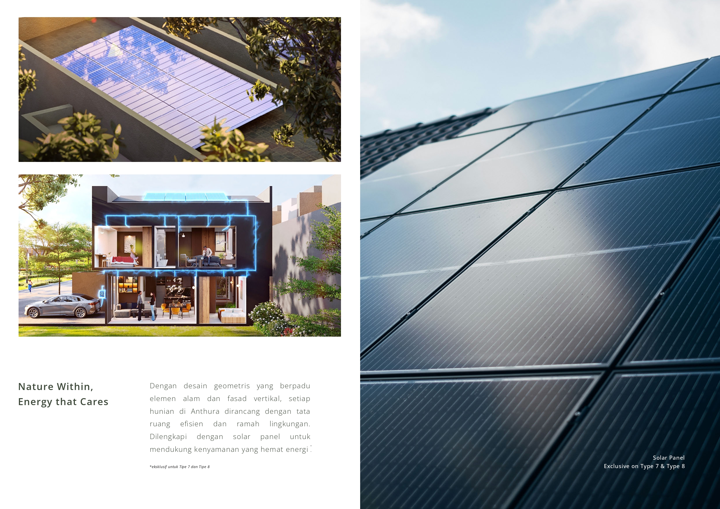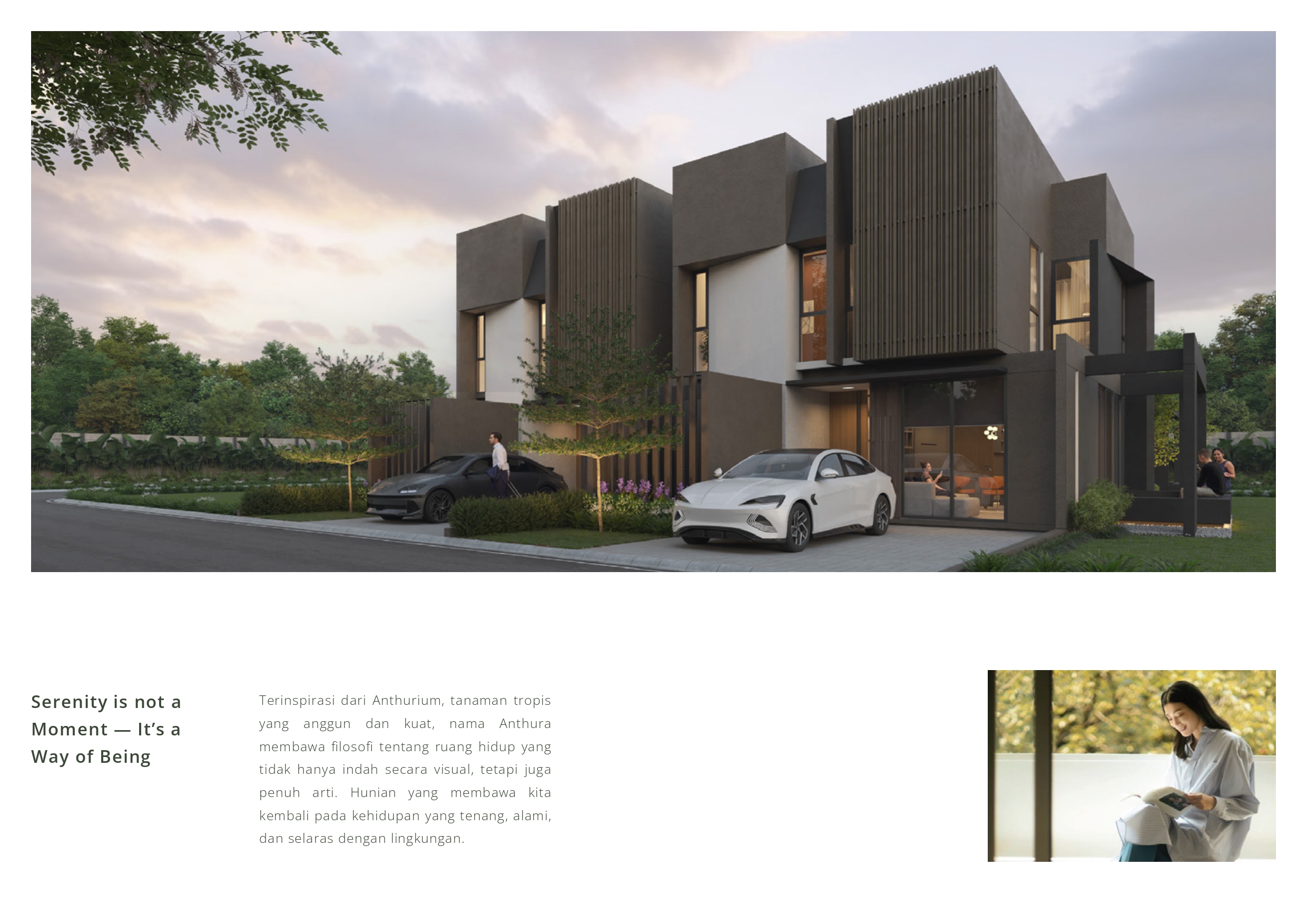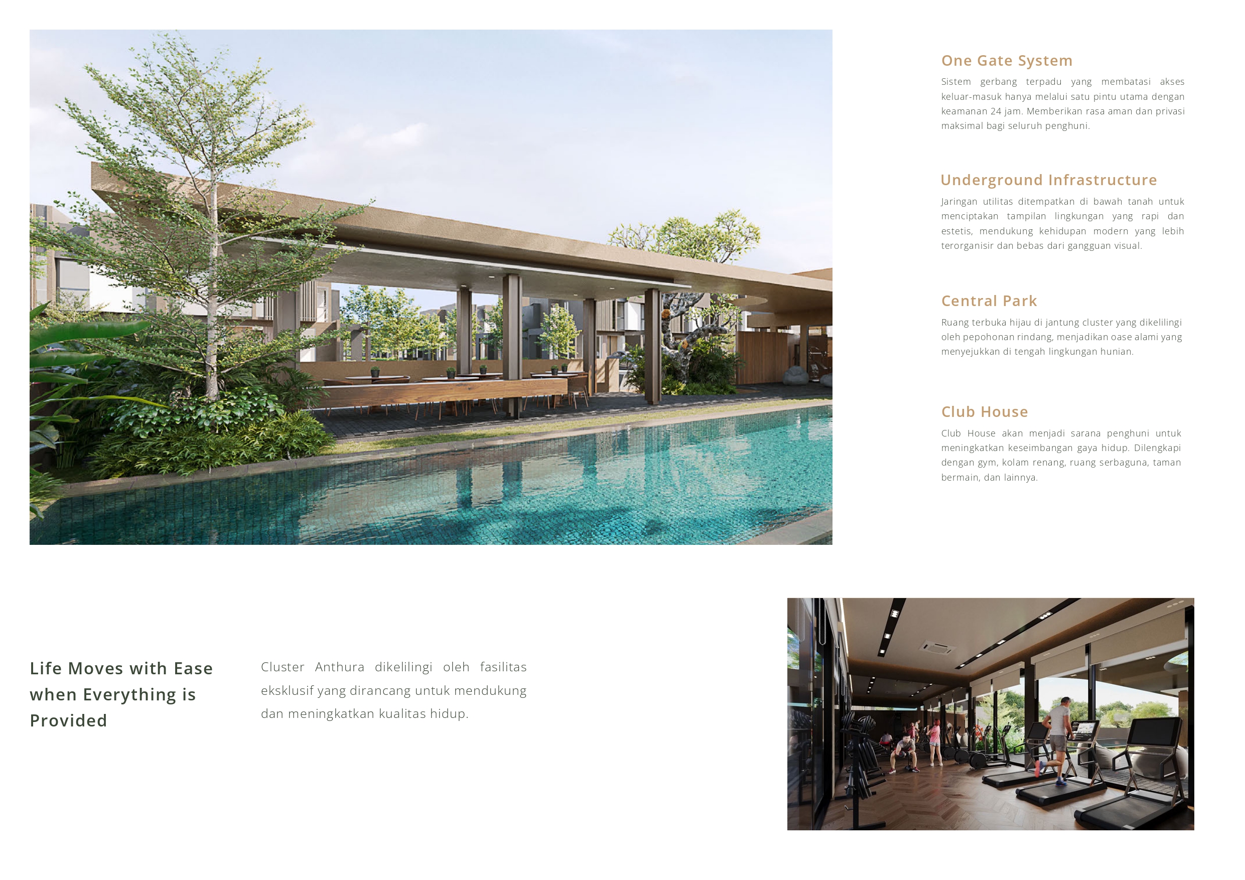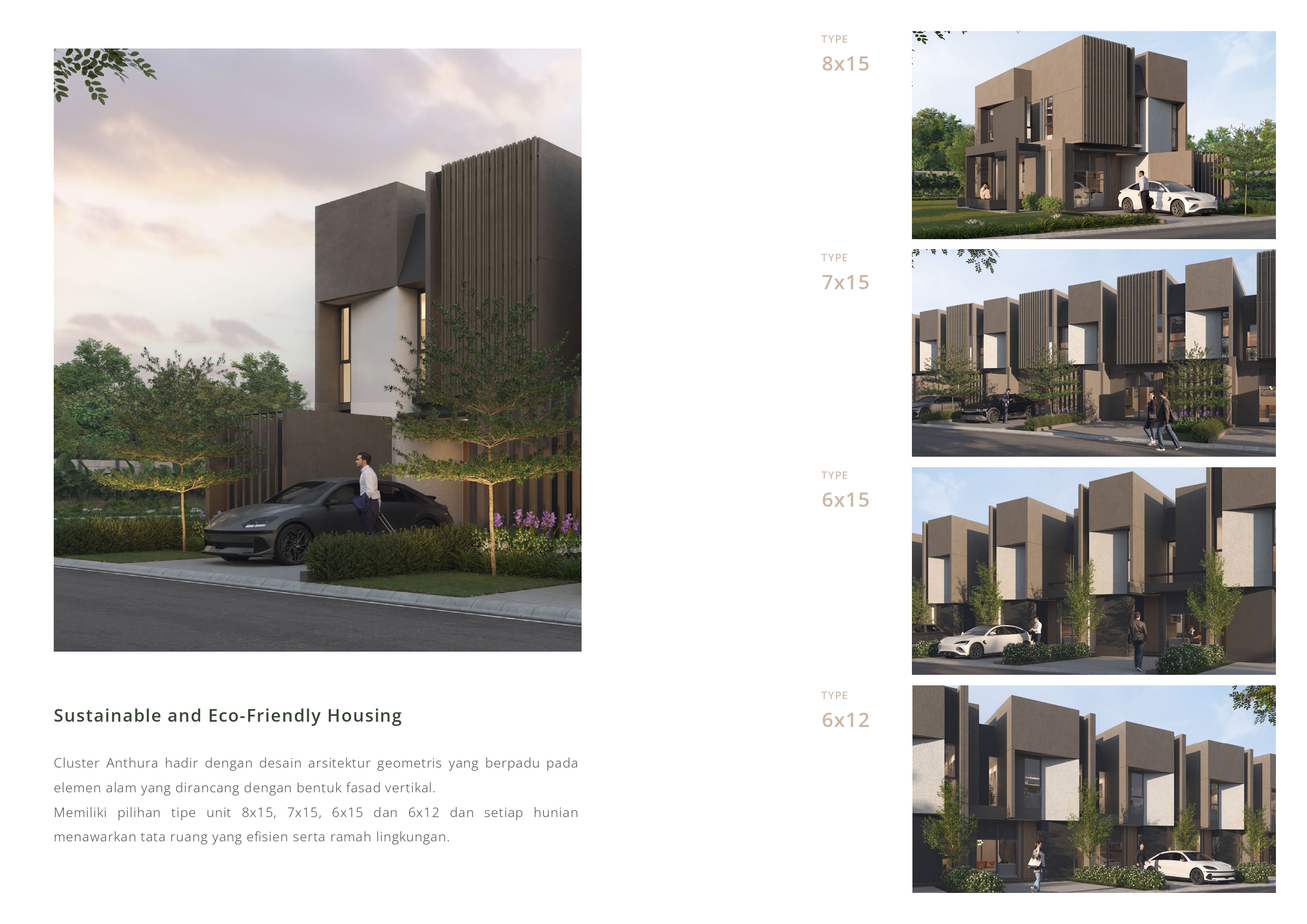 Selain menawarkan kenyamanan, Cluster Anthura juga menghadirkan konsep kehidupan berkelanjutan (sustainable living). Lingkungan cluster didesain agar selaras dengan alam, menciptakan suasana yang asri, hijau, dan menyegarkan. Setiap detail dari kawasan ini dirancang untuk memfasilitasi gaya hidup sehat dan aktif, sekaligus mendukung mobilitas penghuni dengan fasilitas modern dan aksesibilitas yang terintegrasi.