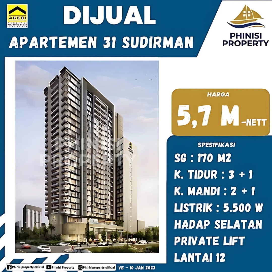 Miliki hunian mewah dan eksklusif di Apartemen 31 Sudirman, Makassar, yang menawarkan kenyamanan dan gaya hidup premium di jantung kota. Unit ini memiliki Semi Gross (SG) seluas 170 M2, dirancang dengan 3+1 kamar tidur dan 2+1 kamar mandi, sangat ideal untuk keluarga yang mencari ruang luas dan privasi. Dilengkapi dengan daya listrik 5.500 W dan menghadap ke Selatan, unit ini juga memiliki keistimewaan private lift dan berlokasi di Lantai 12, menjamin eksklusivitas dan kemudahan akses. Ditawarkan dengan harga 5,7 Miliar (nett), apartemen di 31 Sudirman ini adalah pilihan sempurna bagi Anda yang menginginkan hunian berkelas tinggi dengan fasilitas lengkap dan lokasi yang tak tertandingi di Makassar.