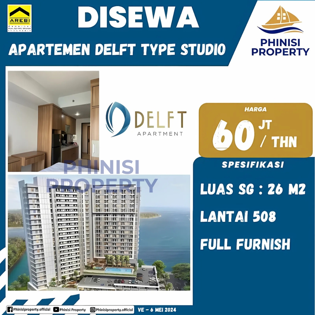 Mencari hunian sewa yang nyaman dan strategis di Makassar? Tersedia unit apartemen Delft Type Studio yang disewakan, dengan luas semi-gross (SG) 26 m 2 . Berlokasi di lantai 508, unit ini menawarkan kenyamanan optimal dengan pemandangan sekitar. Keunggulan utama adalah kondisi unit yang sudah full furnish, memungkinkan Anda langsung menempati tanpa perlu repot membeli perabotan. Dengan harga sewa 60 juta/tahun, apartemen ini merupakan pilihan ideal bagi individu atau pasangan yang menginginkan kepraktisan dan gaya hidup modern di pusat kota. Segera hubungi untuk informasi lebih lanjut dan jadwalkan kunjungan Anda.