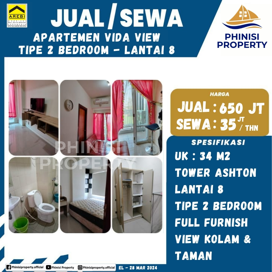 Apartemen Vida View 2BR Hadap Taman dan Kolam