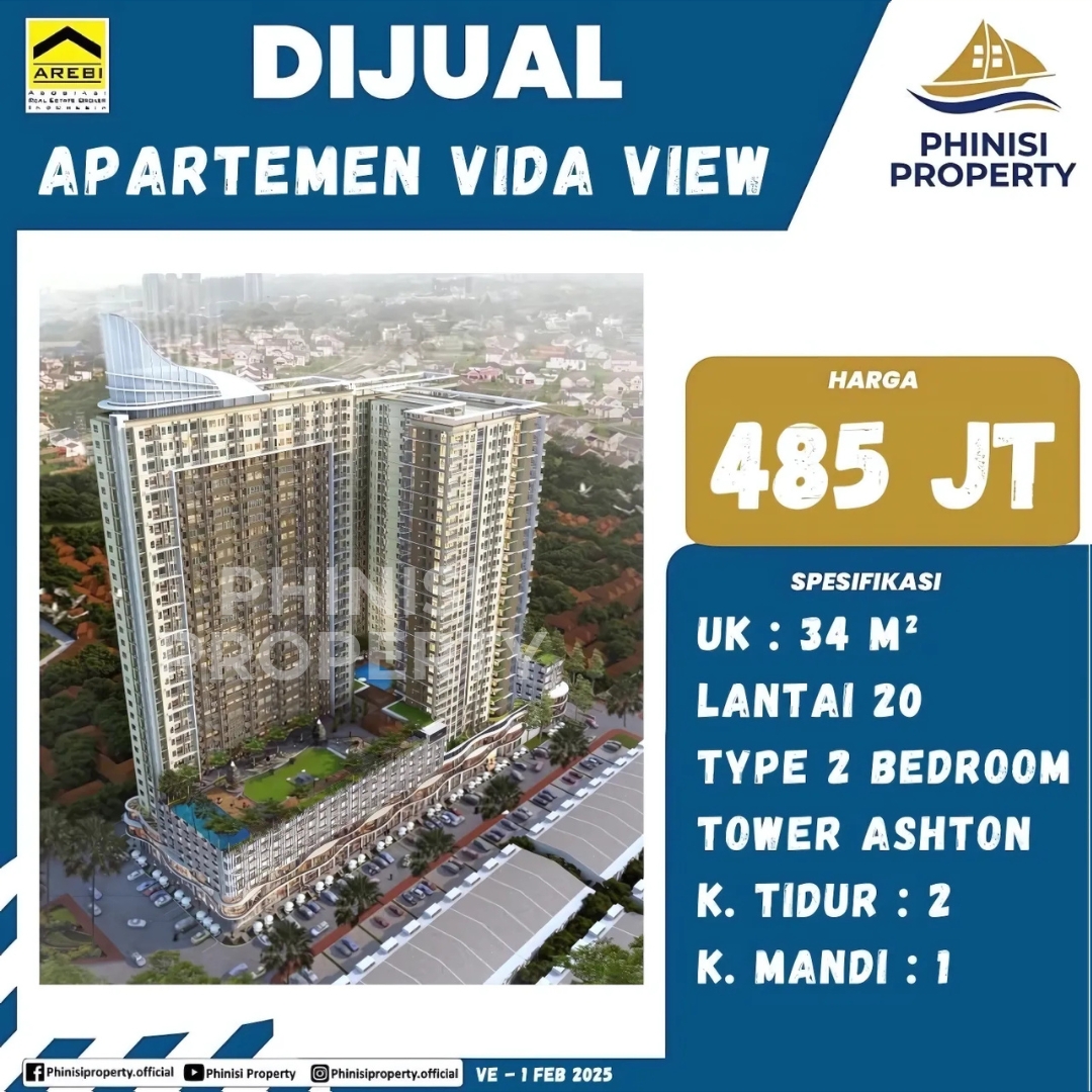 Mencari apartemen dijual di Makassar dengan fasilitas lengkap dan lokasi premium? Apartemen Vida View adalah pilihan sempurna untuk hunian modern Anda! Tersedia unit dengan luas 34 meter persegi, berada di Lantai 20 Tower Ashton. Apartemen ini berjenis 2 Bedroom, menawarkan 2 kamar tidur dan 1 kamar mandi, sangat ideal untuk pasangan muda, keluarga kecil, atau sebagai investasi properti.