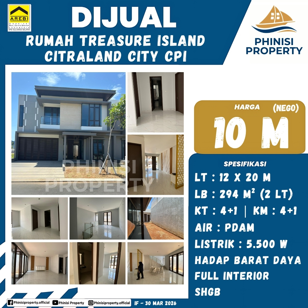 Dijual Rumah di Treasure Island CPI dengan Dimensi 12×20 Full Interior - Treasure Island, Centre Point of Indonesia (CPI), Panambungan, Mariso, Makassar, Sulawesi Selatan, Sulawesi, Indonesia