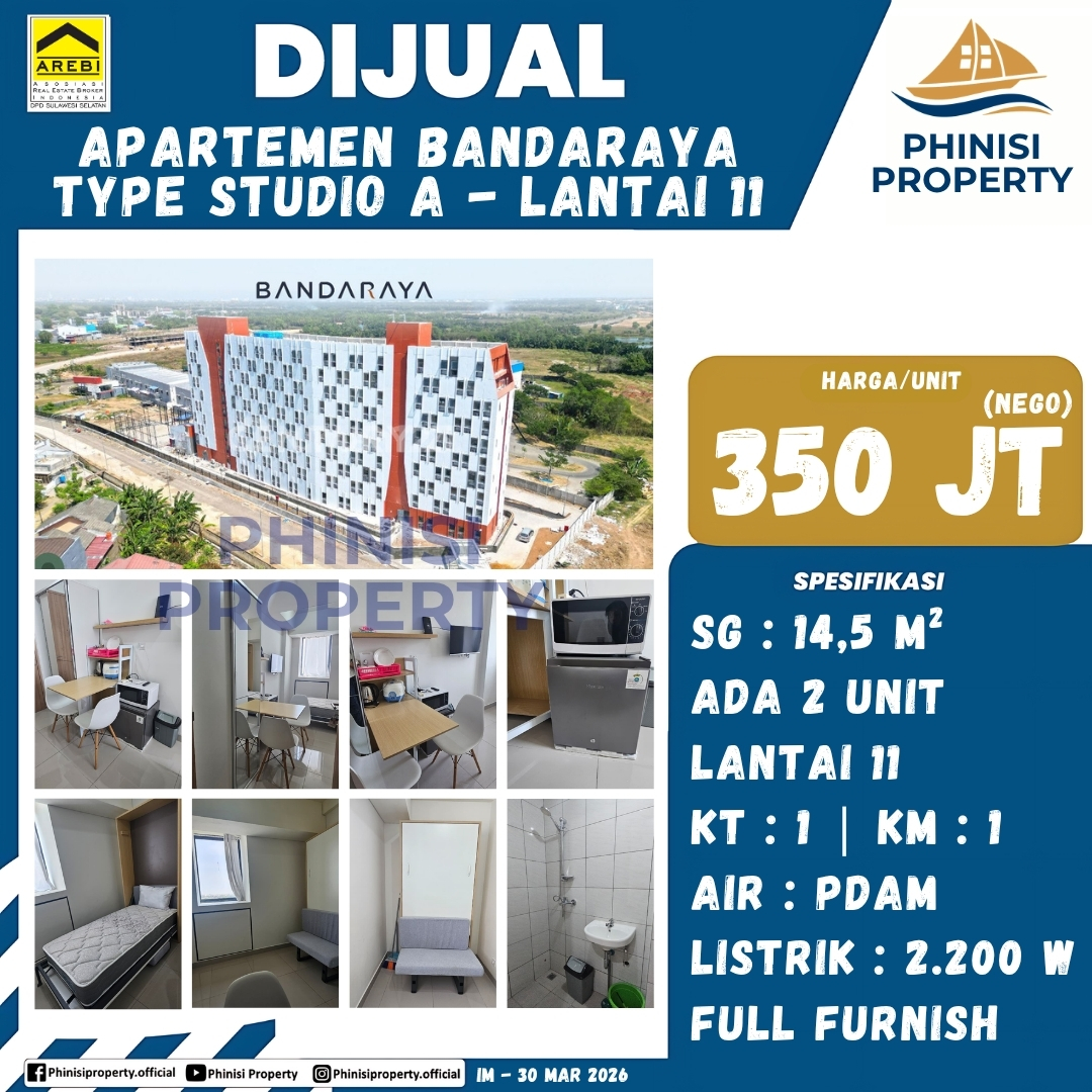 Dijual 2 Unit Apartemen Bandaraya Type Studio A Lantai 11 Tallasa City - Tallasa City, Kapasa Raya, Tamalanrea, Makassar, Sulawesi Selatan, Sulawesi, Indonesia