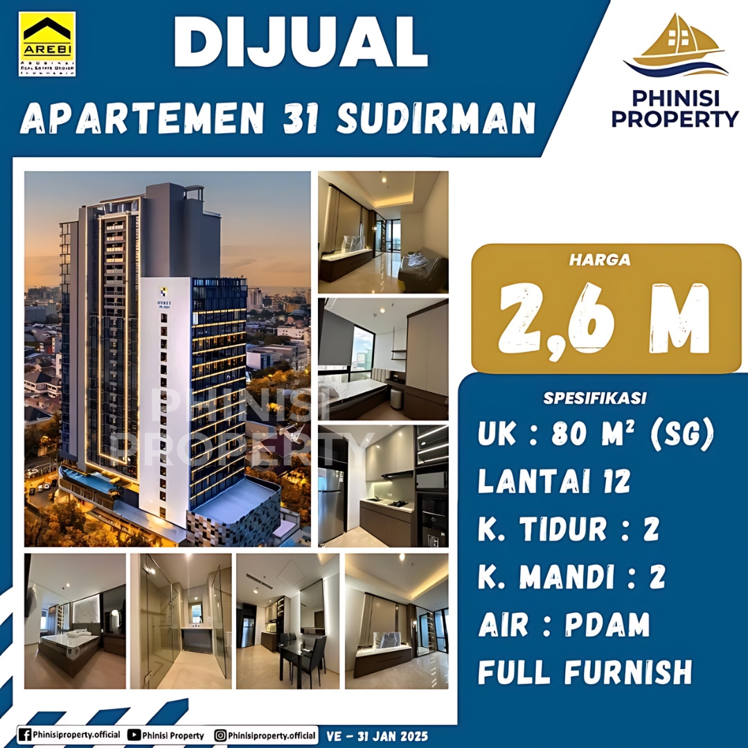 Mencari apartemen dijual di pusat kota Makassar dengan kenyamanan maksimal? Apartemen 31 Sudirman adalah pilihan sempurna untuk Anda! Tersedia unit eksklusif dengan luas 80 meter persegi (semi gross), berada di Lantai 12. Apartemen ini menawarkan 2 kamar tidur dan 2 kamar mandi, sangat ideal untuk keluarga modern atau sebagai investasi properti yang menguntungkan.