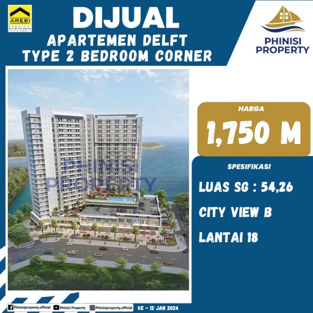 Mencari hunian mewah atau investasi properti di Makassar? Tersedia unit apartemen Delft Type 2 Bedroom Corner yang dijual, dengan luas semi-gross (SG) 54,26 m 2 . Berlokasi di lantai 18, unit ini menawarkan pemandangan kota (city view B) yang menawan, memberikan nuansa eksklusif dan modern. Dengan harga 1,750 Miliar Rupiah, apartemen ini merupakan pilihan ideal bagi Anda yang menginginkan ruang lebih luas, kenyamanan premium, dan nilai investasi yang menjanjikan di lokasi strategis Makassar. Jangan lewatkan kesempatan memiliki properti idaman ini.