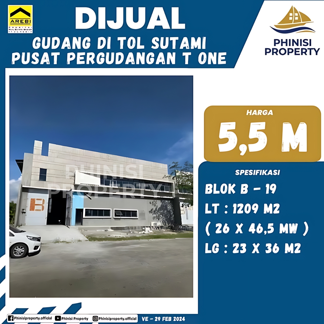 Dijual Gudang di Pusat Pergudangan T One Tol Sutami