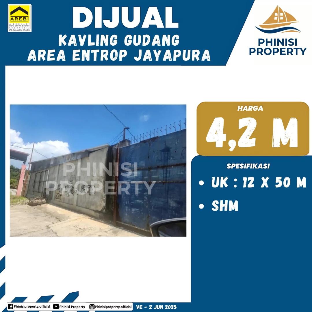 PHINISI PROPERTY dengan bangga mempersembahkan properti investasi yang sangat potensial: sebuah kavling gudang yang berlokasi di Area Entrop, Jayapura. Ini adalah kesempatan emas bagi Anda yang mencari lahan siap bangun untuk gudang, pusat distribusi, atau investasi properti di kawasan industri yang berkembang pesat.