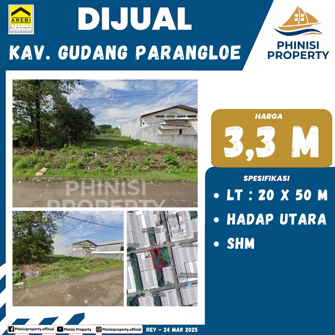 Dijual kavling gudang yang berlokasi strategis di kawasan industri Parangloe, Makassar. Properti ini memiliki spesifikasi luas tanah 20 x 50 meter, ideal untuk pembangunan gudang, pabrik, atau fasilitas logistik. Dengan posisi menghadap utara, properti ini menawarkan orientasi yang baik. Kavling ini dilengkapi dengan sertifikat Hak Milik (SHM) yang menjamin legalitas dan keamanan investasi Anda. Berada di area yang sedang berkembang pesat untuk sektor industri, properti ini adalah pilihan investasi yang sangat menguntungkan bagi pengusaha atau investor yang mencari lahan prospektif di kawasan bisnis yang strategis.