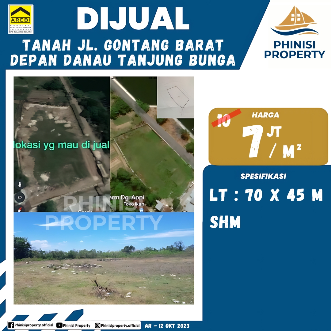Sebuah peluang investasi properti yang sangat langka kini hadir di kawasan prestisius Tanjung Bunga. Dijual tanah siap bangun di depan danau dengan ukuran yang sangat ideal, yaitu 70 x 40 meter. Lahan yang sangat luas ini sangat cocok untuk pengembangan proyek skala besar seperti perumahan, resort, atau area komersial. Berlokasi strategis dengan pemandangan danau dan bersertifikat SHM, properti ini menjanjikan nilai investasi yang terus meningkat.