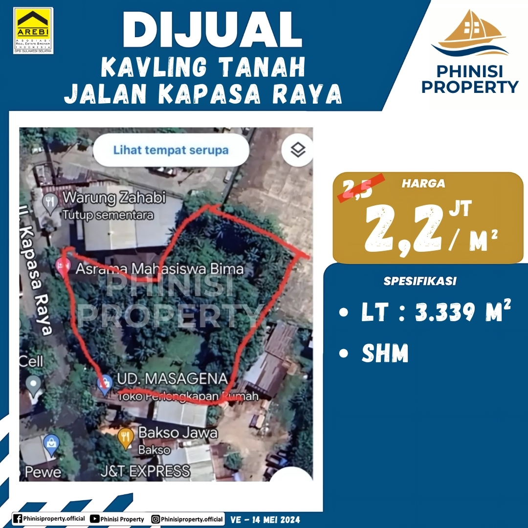 Mencari tanah dijual di lokasi strategis dengan potensi pengembangan yang besar di Makassar? Kavling tanah di Jalan Kapasa Raya adalah kesempatan investasi luas yang tidak boleh Anda lewatkan! Dengan luas tanah masif 3.339 meter persegi, properti ini sangat ideal untuk berbagai proyek pengembangan, mulai dari perumahan, kompleks komersial, gudang, hingga fasilitas pendidikan atau asrama mahasiswa, mengingat lokasinya yang berdekatan dengan Asrama Mahasiswa Bima.