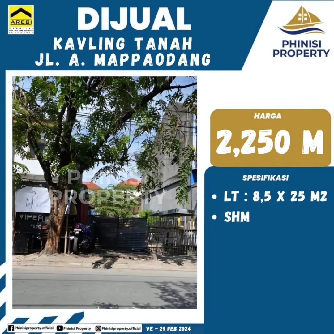 Dapatkan kesempatan langka untuk memiliki kavling tanah strategis di Jalan A. Mappaoppang, Makassar, lokasi yang sangat cocok untuk membangun hunian impian atau investasi properti jangka panjang. Kavling ini memiliki luas tanah 8,5 x 25 M2, menawarkan ruang yang luas dan fleksibel untuk berbagai perencanaan pembangunan. Dengan status kepemilikan Sertifikat Hak Milik (SHM), Anda dapat bertransaksi dengan aman dan nyaman. Ditawarkan dengan harga 2,250 M, kavling ini merupakan pilihan cerdas bagi Anda yang mencari tanah di lokasi premium dengan nilai investasi yang terus meningkat di jantung kota Makassar.