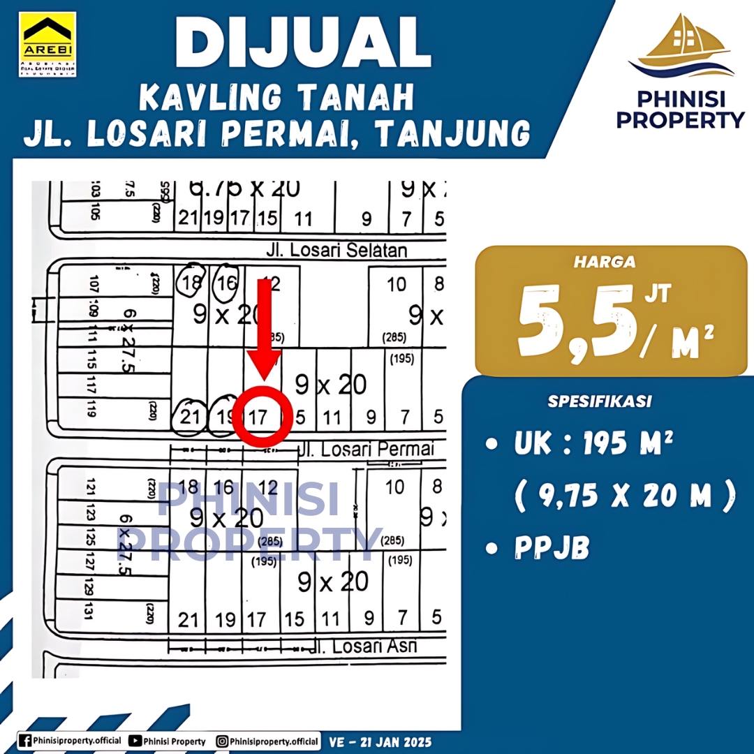 Mencari kavling tanah di lokasi paling elit dan strategis di Makassar? Kavling tanah di Jalan Losari Permai, kawasan Tanjung, adalah kesempatan langka yang tidak boleh Anda lewatkan! Dengan luas 195 meter persegi (9,75 meter×20 meter), kavling ini sangat ideal untuk membangun hunian pribadi impian Anda atau sebagai investasi properti jangka panjang yang sangat menguntungkan.