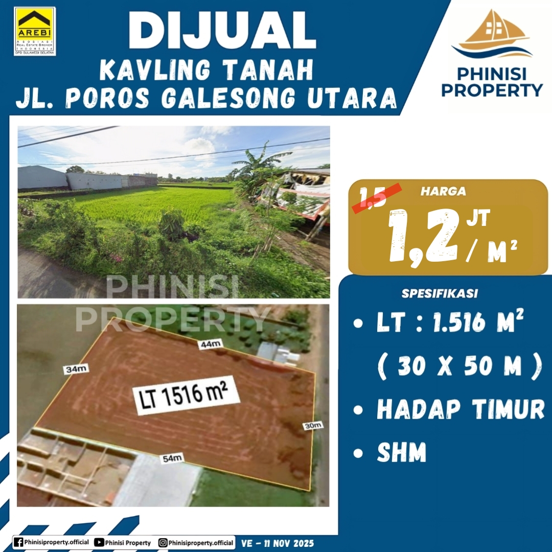 Jangan lewatkan kesempatan untuk memiliki Kavling Tanah dengan lokasi yang sangat strategis di Jalan Poros Galesong Utara. Properti ini sangat ideal untuk investasi, pengembangan perumahan, atau properti komersial, mengingat lokasinya yang berada di jalur utama dan potensi pertumbuhan di area tersebut. Kavling ini memiliki Luas Tanah yang besar, yaitu 1.516 M², dengan dimensi perkiraan 30 x 50 meter, memberikan fleksibilitas tinggi untuk berbagai rencana pembangunan. Tanah ini memiliki orientasi hadap Timur, menjanjikan pencahayaan pagi yang baik dan cocok untuk desain bangunan yang optimal. Legalitas properti terjamin aman karena sudah bersertifikat SHM (Sertifikat Hak Milik), menawarkan kepastian dan nilai investasi jangka panjang yang solid di kawasan Poros Galesong Utara yang terus berkembang.