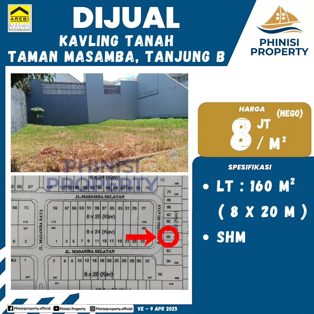 Ukuran (LT): 160 M² (± 8 x 20 Meter)