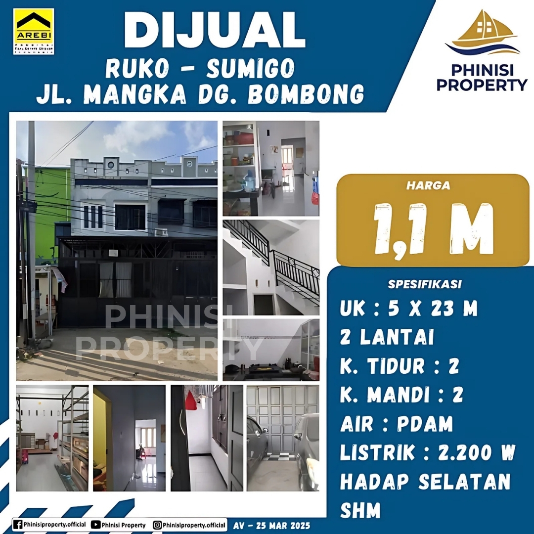Ruko dua lantai yang berlokasi di Sumigo, Jl. Mangka Dg. Bombong - Yusuf Bauty, ini adalah pilihan ideal untuk Anda yang mencari properti komersial yang fungsional dan siap pakai. Dengan ukuran lahan 5 x 23 meter, ruko ini menawarkan ruang yang efisien untuk berbagai jenis usaha. Properti ini dilengkapi dengan dua kamar tidur dan dua kamar mandi, sangat mendukung operasional bisnis yang efisien. Fasilitas dasar seperti pasokan air PDAM dan daya listrik 2.200 watt sudah tersedia. Menghadap ke selatan, ruko ini memiliki sirkulasi udara dan cahaya yang baik. Dengan kepemilikan Sertifikat Hak Milik (SHM) yang menjamin legalitas, ruko ini merupakan investasi yang aman dan sangat berharga di lokasi yang strategis.