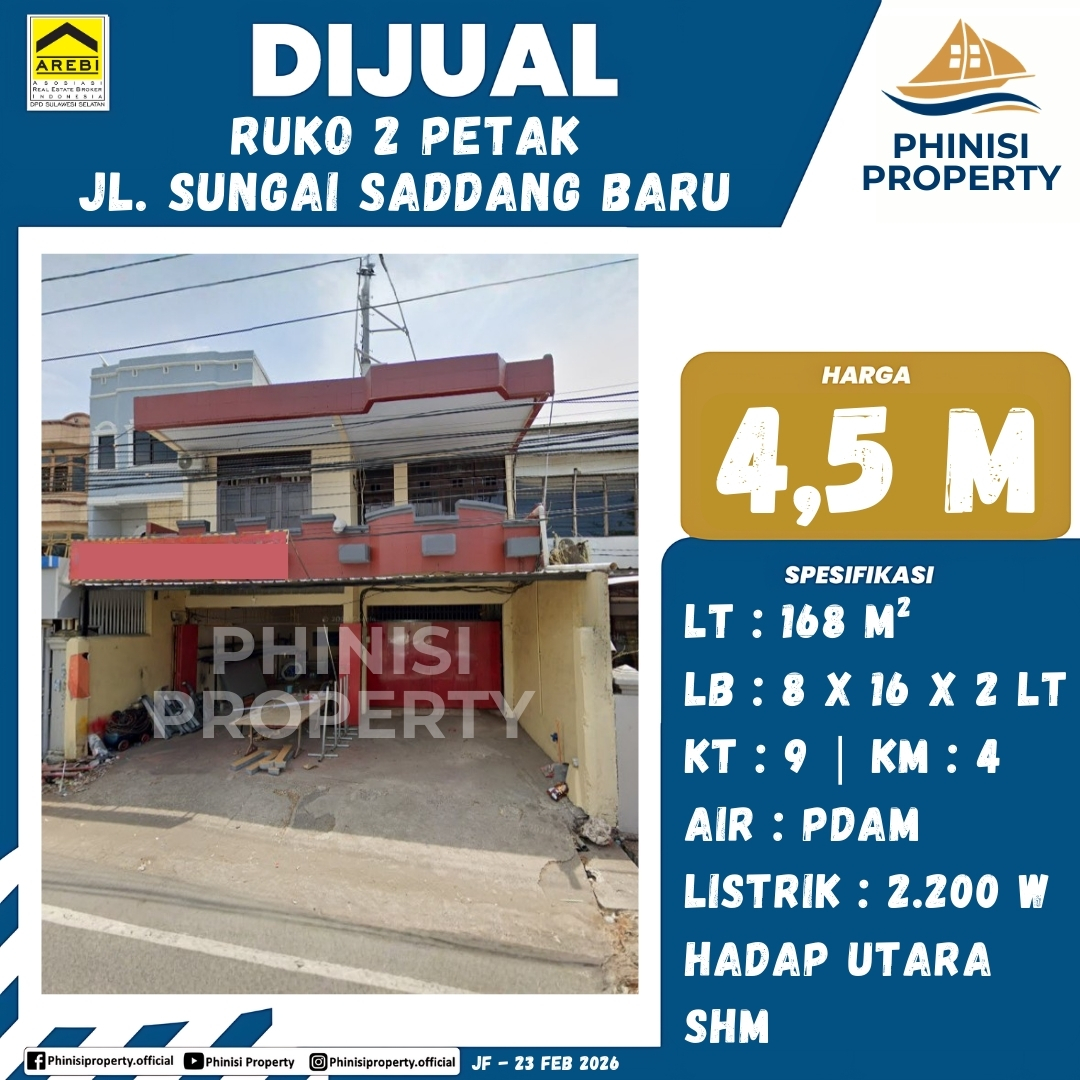 Dijual Ruko 2 Petak Jl. Sungai Saddang Baru - Jalan Sungai Saddang Baru, Bara-Baraya Selatan, Makassar, Sulawesi Selatan, Sulawesi, 90144, Indonesia
