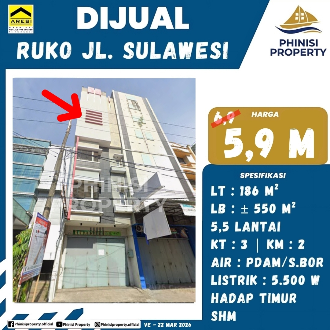 Dijual Ruko Megah 5,5 Lantai di Jl. Sulawesi – Peluang Bisnis Eksklusif di Pusat Kota!