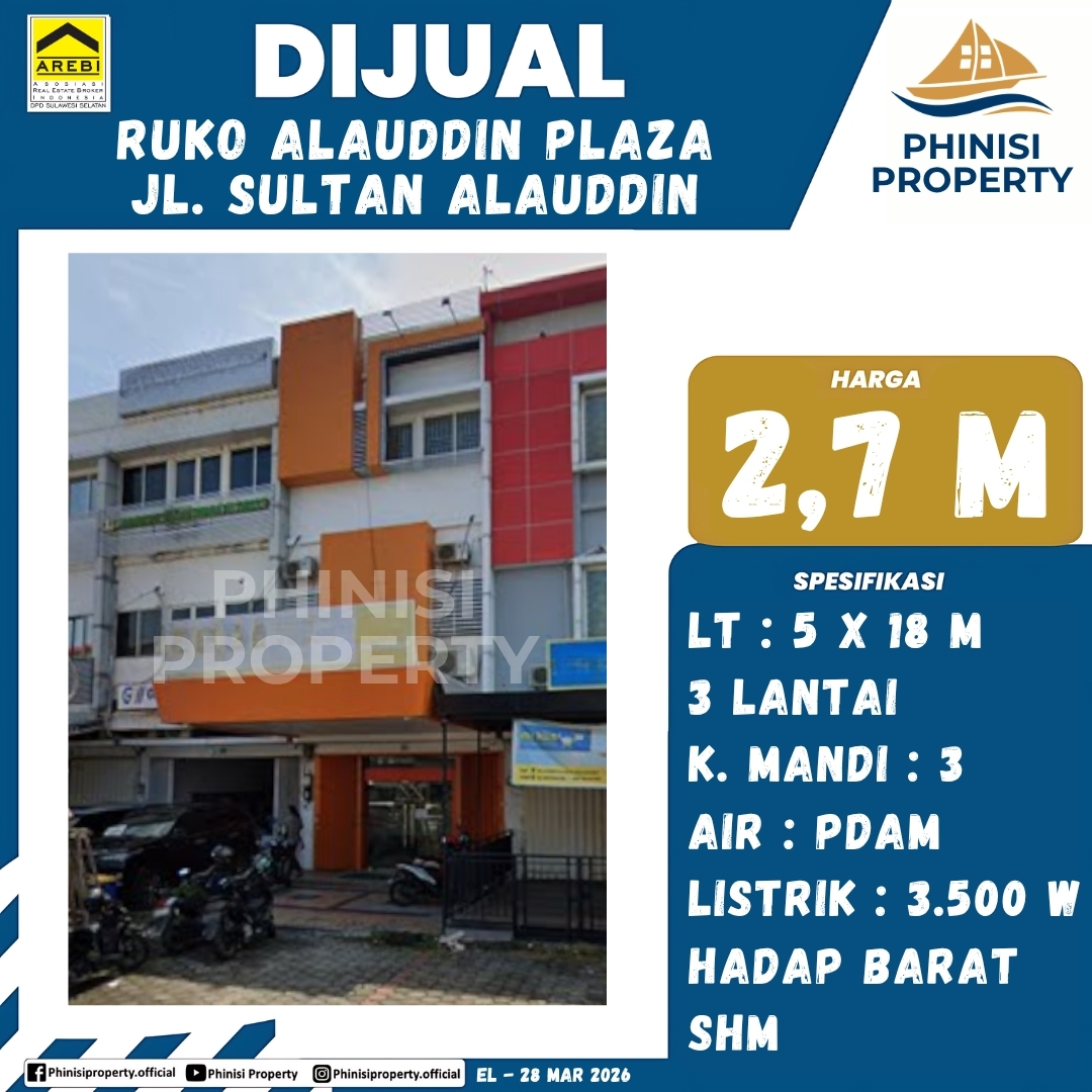 Dijual Ruko Alauddin Plaza Jl. Sultan Alauddin - Alauddin Plaza, Gunung Sari, Rappocini, Makassar, Sulawesi Selatan, Sulawesi, Indonesia