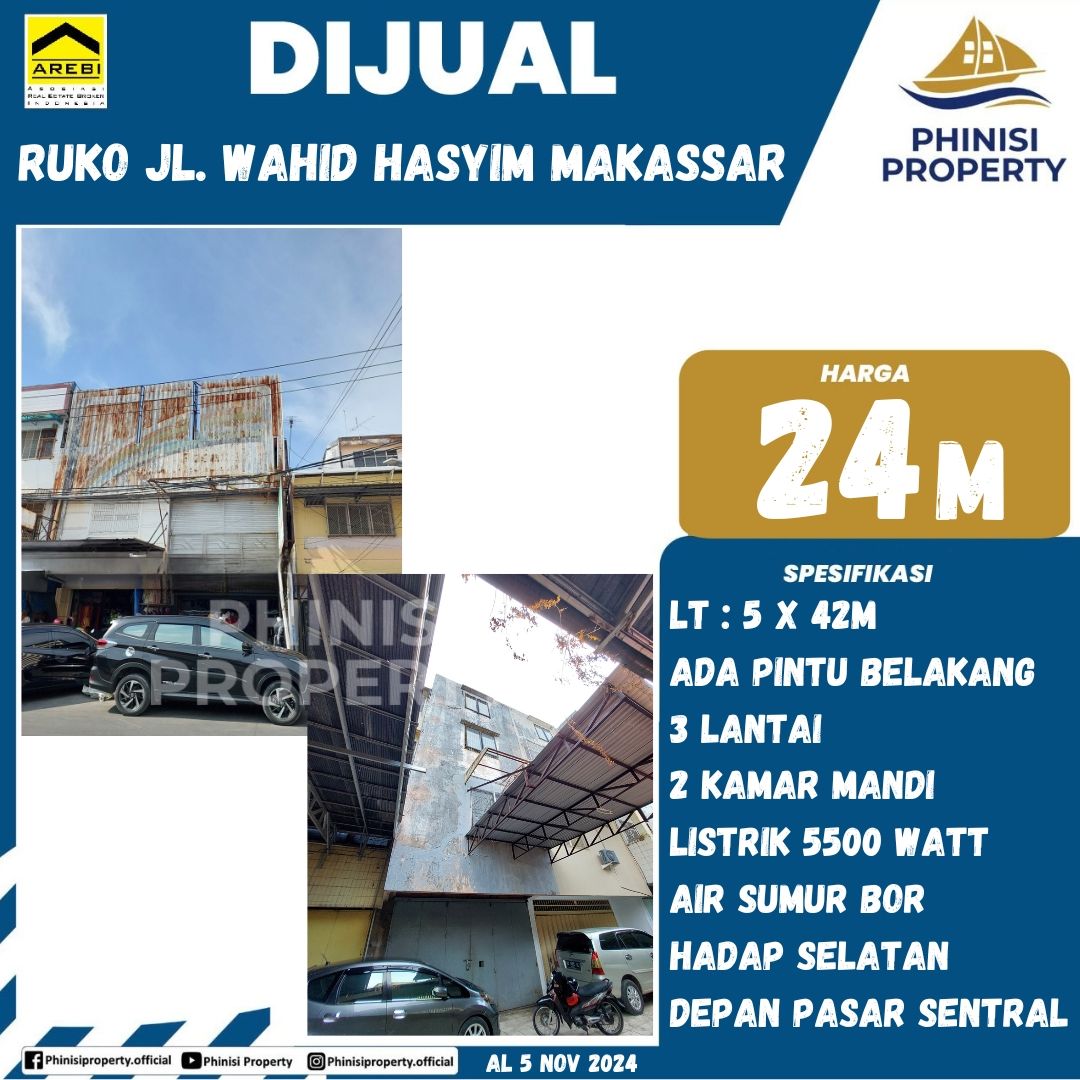 DIJUAL Ruko depan Pasar Sentral di Jalan Wahid Hasyim Makassar – Lokasi Strategis, Cocok Usaha & Kantor