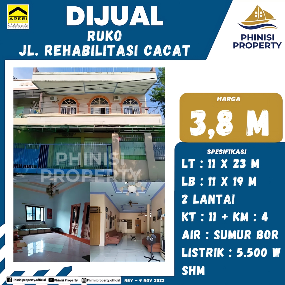 Dijual segera ruko dua lantai di lokasi strategis, Jalan Rehabilitasi Cacat, yang ideal untuk berbagai jenis usaha dan tempat tinggal. Properti ini memiliki luas tanah 11×23 meter dan luas bangunan 11×19 meter, sangat luas dengan 11 kamar tidur dan empat kamar mandi. Dilengkapi dengan daya listrik 5.500 watt dan pasokan air dari sumur bor, ruko ini siap untuk ditempati. Dengan status kepemilikan SHM, legalitas properti ini terjamin. Jangan lewatkan kesempatan untuk memiliki properti komersial yang menjanjikan di lokasi yang ramai.