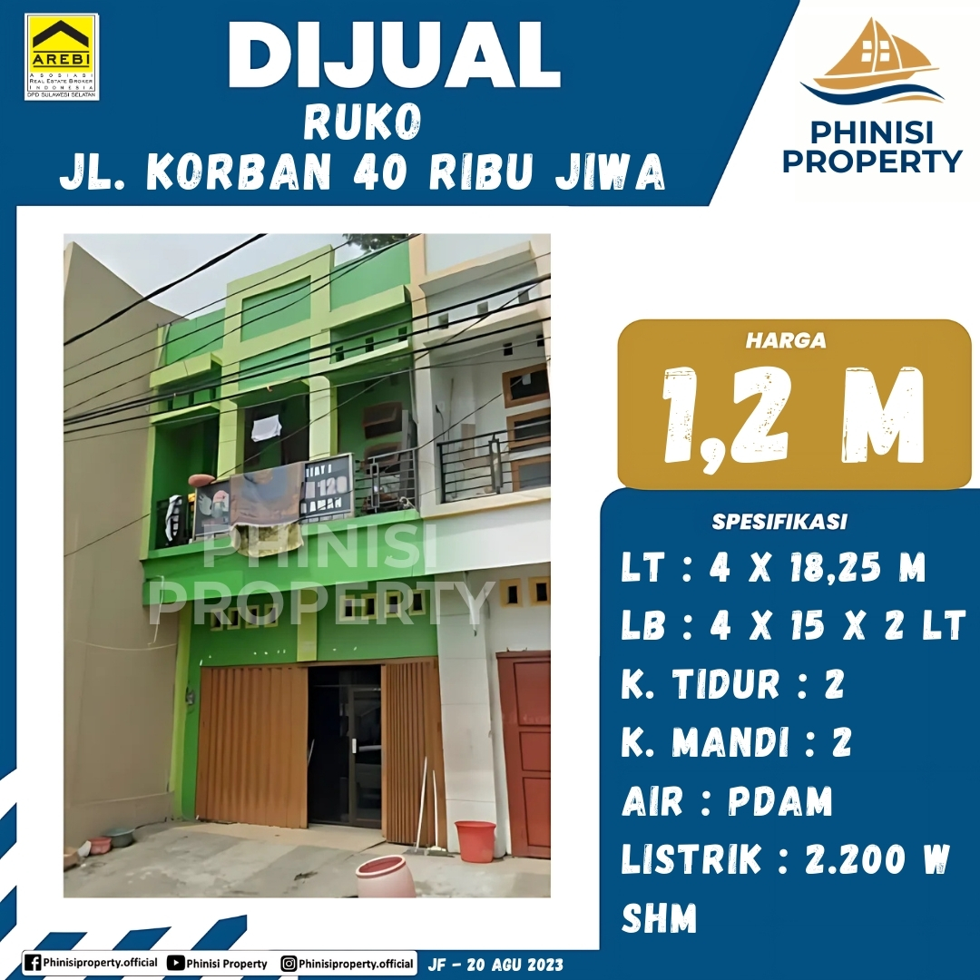 DIJUAL: Ruko di Jl. Korban 40 Ribu Jiwa