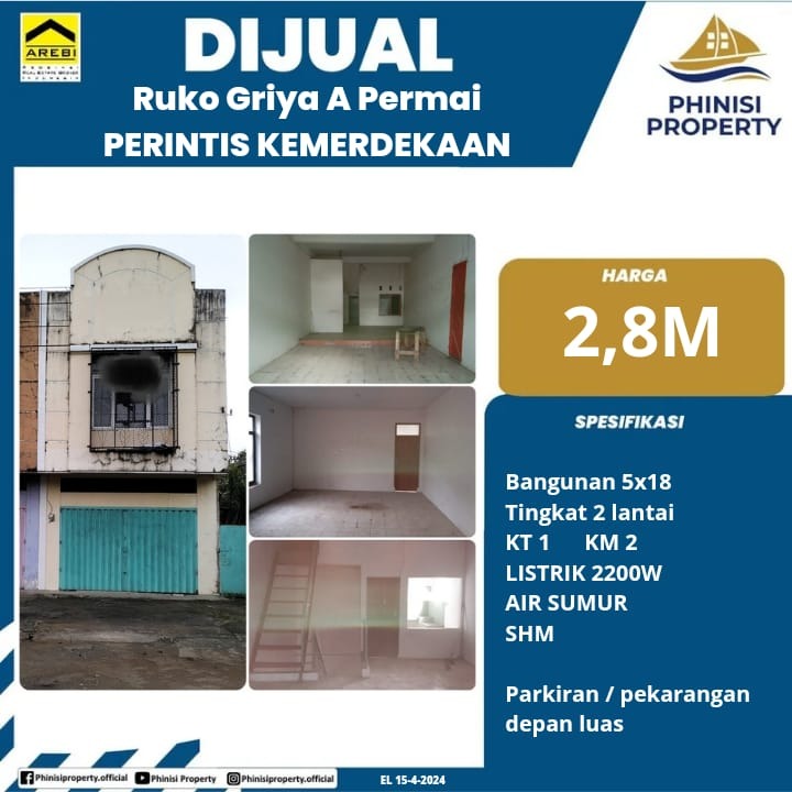 Mencari properti komersial yang menjanjikan di Makassar? Ruko Griya A Permai di Jalan Perintis Kemerdekaan ini adalah pilihan yang tepat. Ruko ini memiliki luas bangunan 5 x 18 meter dan terdiri dari 2 lantai. Dilengkapi dengan 1 kamar tidur dan 2 kamar mandi, properti ini memiliki fasilitas listrik 2.200 watt dan air sumur. Selain itu, ruko ini juga memiliki parkiran/pekarangan depan yang luas. Dengan Sertifikat Hak Milik (SHM), ruko ini sangat ideal untuk berbagai jenis usaha. Lokasinya yang strategis dan spesifikasi yang lengkap menjadikannya investasi properti yang sangat menguntungkan.