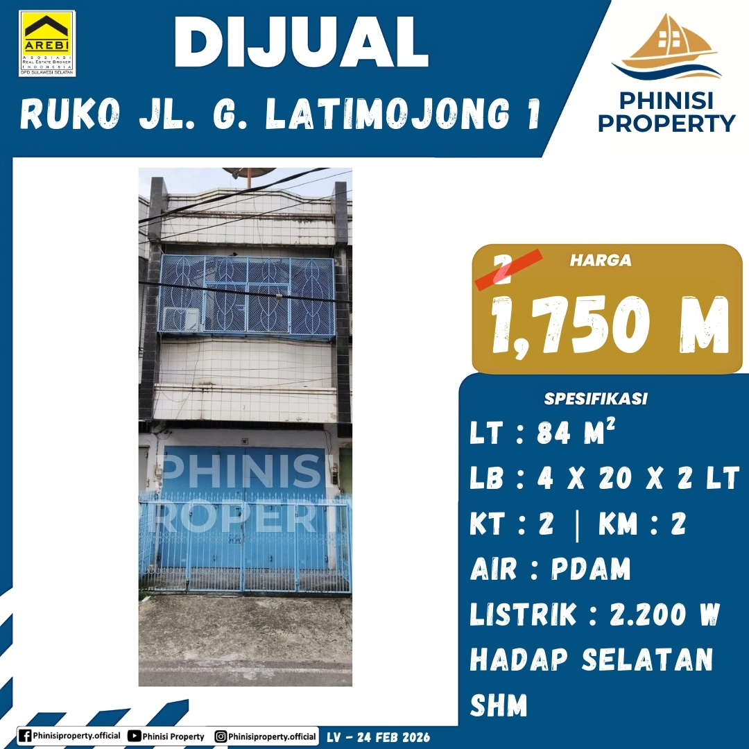 Dijual Ruko Jl. Gunung Latimojong 1 - Jalan G. Latimojong 1, Gaddong, Bontoala, Makassar, Sulawesi Selatan, Sulawesi, 90153, Indonesia