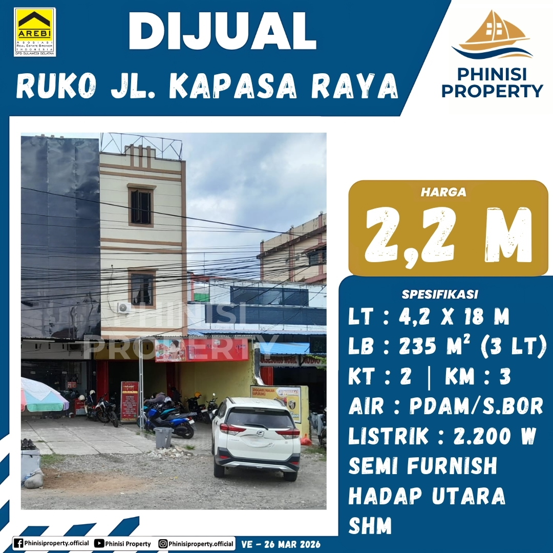 Dijual Ruko Jl. Kapasa Raya - Kapasa Raya, Tamalanrea, Makassar, Sulawesi Selatan, Sulawesi, 90243, Indonesia