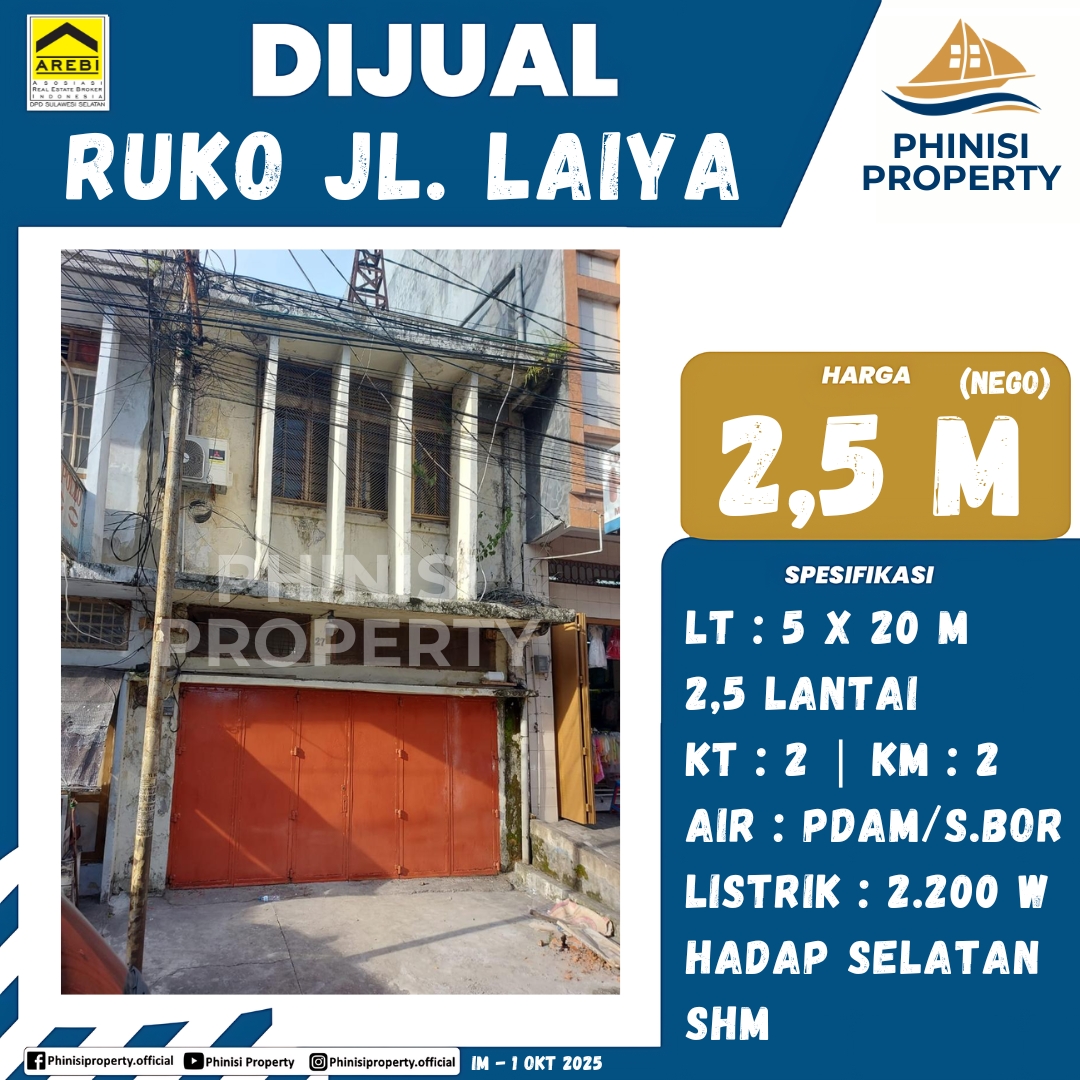 Dapatkan peluang emas untuk memiliki Ruko dengan lokasi super strategis di Jalan Laiya, pusat bisnis yang ramai. Properti komersial ini sangat ideal untuk usaha, kantor, atau investasi. Ruko ini menawarkan Luas Tanah (LT) 100 m2