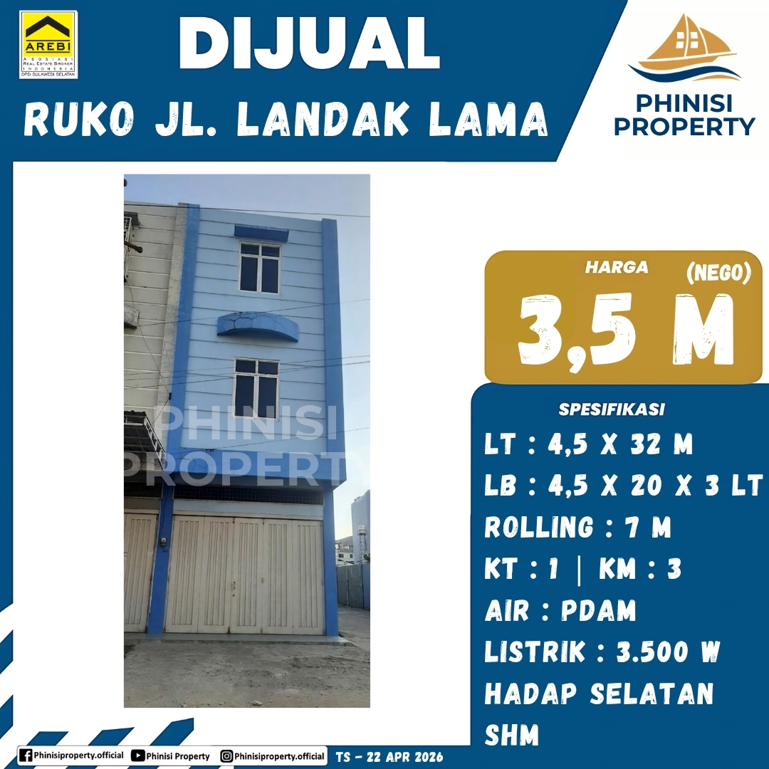 Dijual Ruko Jl. Landak Lama - Jalan Landak Lama, Labuang Baji, Mamajang, Makassar, Sulawesi Selatan, Sulawesi, 90132, Indonesia