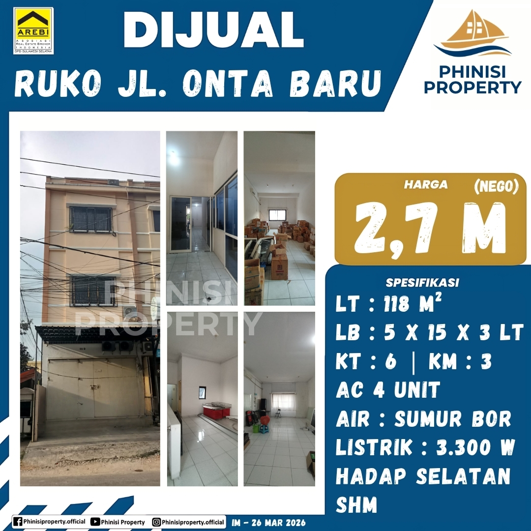 Dijual Ruko Jl. Onta Baru - Jalan Onta Baru, Mamajang Luar, Mamajang, Makassar, Sulawesi Selatan, Sulawesi, 90131, Indonesia