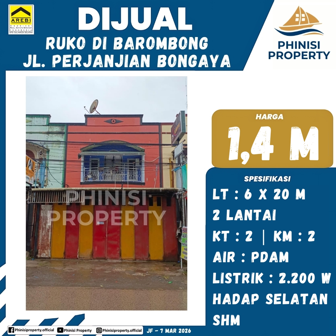 Dijual Ruko Jl. Perjanjian Bungaya, Barombong