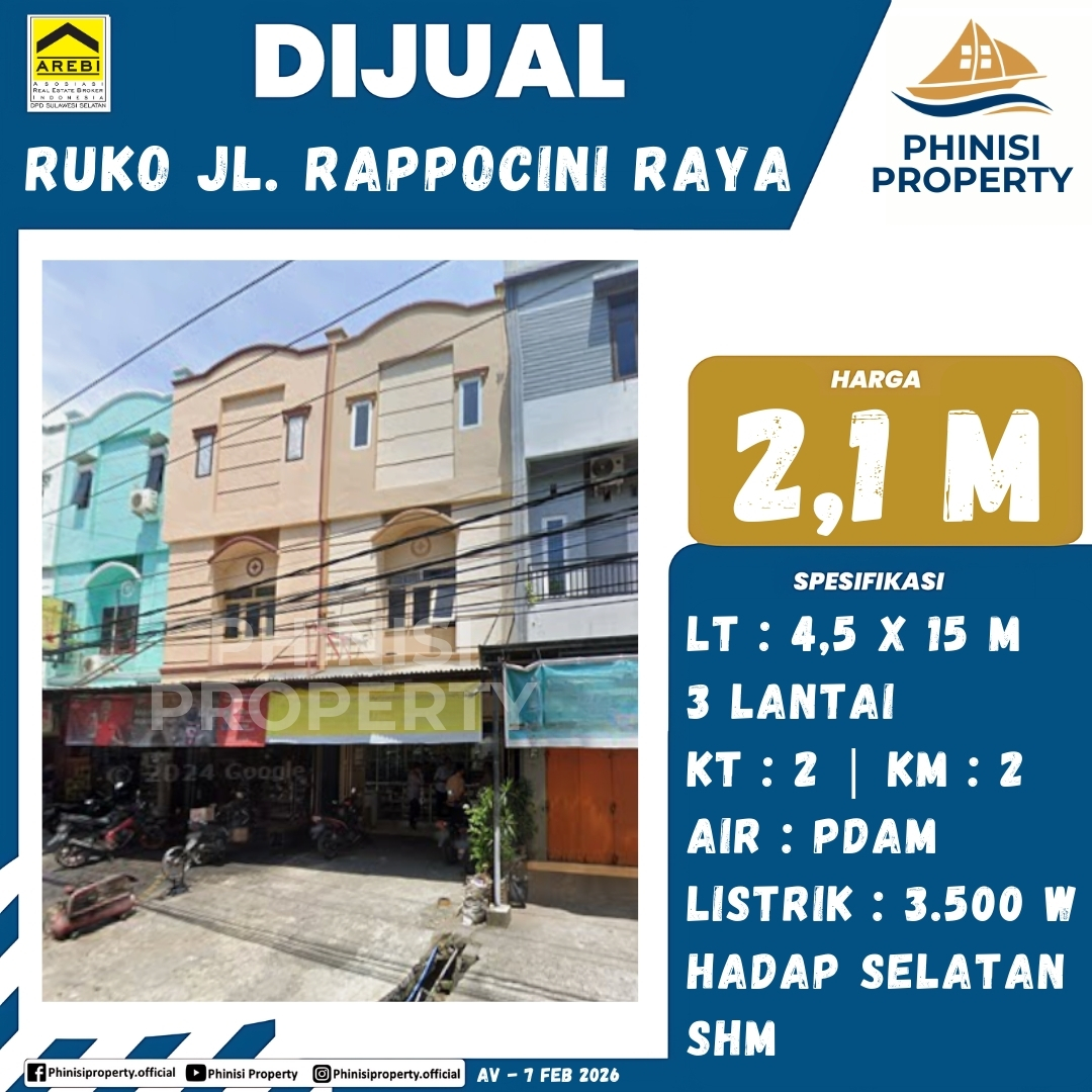 Dijual Ruko Jl. Rappocini Raya - Jalan Rappocini Raya, Benteng, Buakana, Rappocini, Makassar, Sulawesi Selatan, Sulawesi, 90221, Indonesia