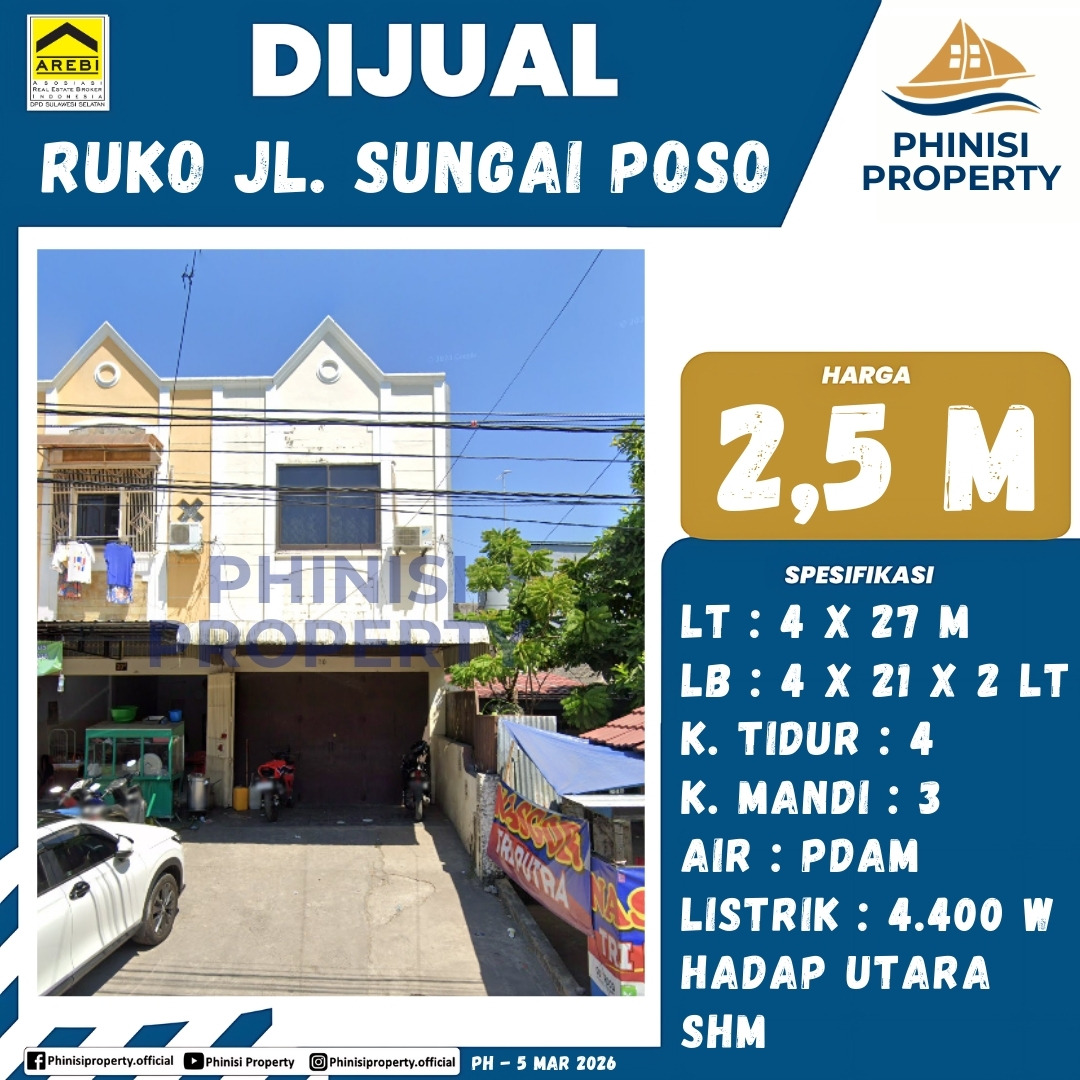 Dijual Ruko Jl. Sungai Poso - Jalan Sungai Poso, Lariang Bangi, Makassar, Sulawesi Selatan, Sulawesi, 90145, Indonesia