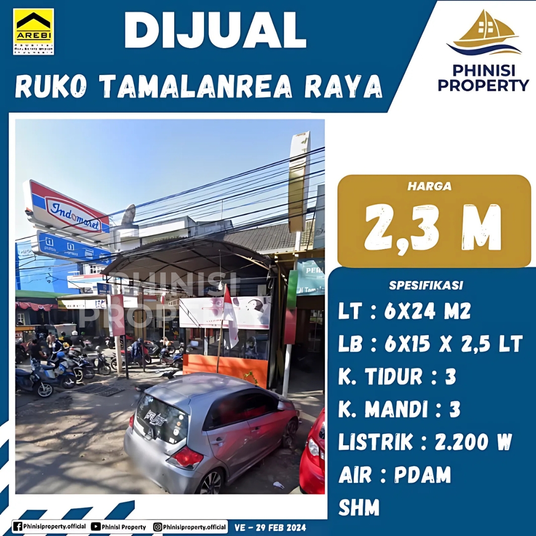 Miliki ruko strategis di Jalan Tamalanrea Raya, Makassar, sebuah lokasi ideal untuk mengembangkan bisnis Anda di area yang ramai dan berkembang pesat. Ruko ini memiliki luas tanah 6 x 24 M2 dengan luas bangunan 6 x 15 M yang terdiri dari 2,5 lantai, menawarkan ruang yang luas dan fungsional untuk berbagai jenis usaha. Dilengkapi dengan 3 kamar tidur dan 3 kamar mandi, ruko ini siap memenuhi kebutuhan operasional dan akomodasi. Dengan daya listrik 2.200 W dan pasokan air PDAM, ruko ini menjamin kenyamanan dan kelancaran aktivitas bisnis Anda. Ditawarkan dengan harga 2,3 M dan status kepemilikan SHM, ruko di Tamalanrea Raya ini merupakan pilihan investasi cerdas dengan potensi keuntungan tinggi di salah satu kawasan komersial prospektif di Makassar.