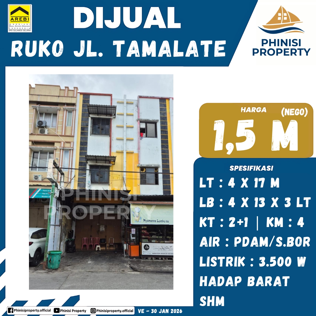 Dijual Ruko Jl. Tamalate - Jalan Tamalate, Perumnas Tamalate, Bonto Makkio, Rappocini, Makassar, Sulawesi Selatan, Sulawesi, 90222, Indonesia