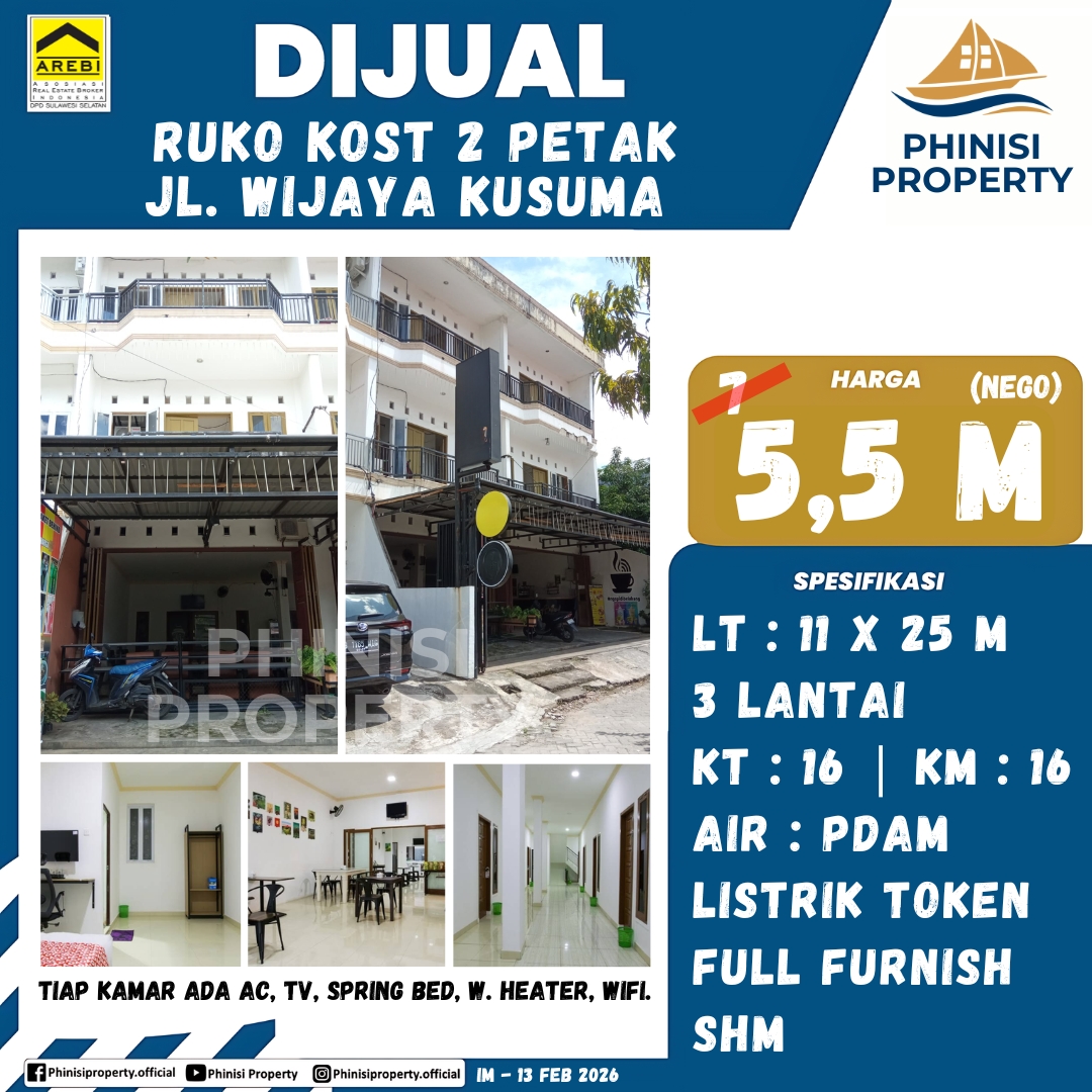 Dijual Ruko Kost 2 Petak Jl. Wijaya Kusuma - Jalan Wijaya Kusuma, Banta-Bantaeng, Rappocini, Makassar, Sulawesi Selatan, Sulawesi, 90111, Indonesia