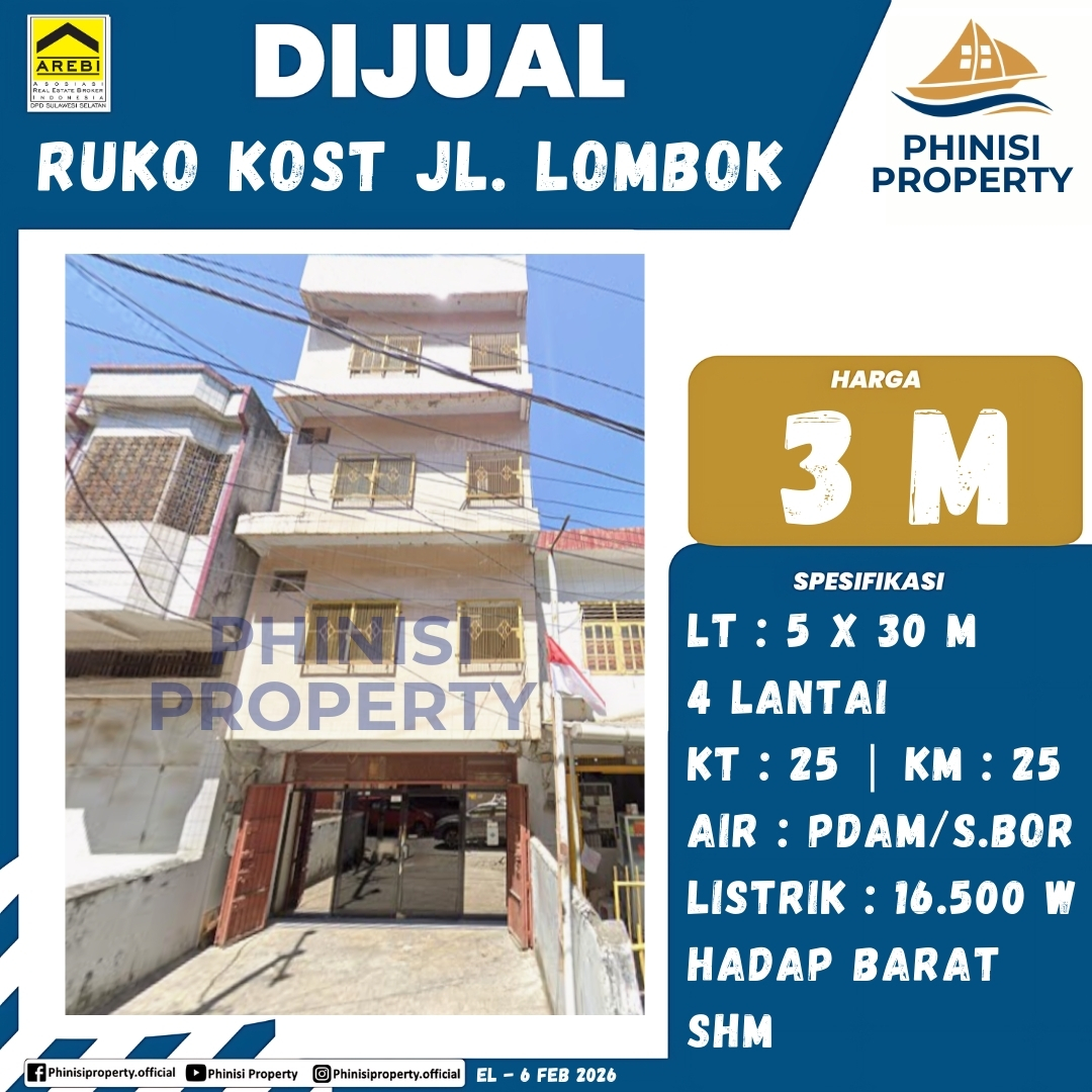 Dijual Ruko Kost Jl. Lombok - Jalan Lombok, Pattunuang, Wajo, Makassar, Sulawesi Selatan, Sulawesi, 90174, Indonesia