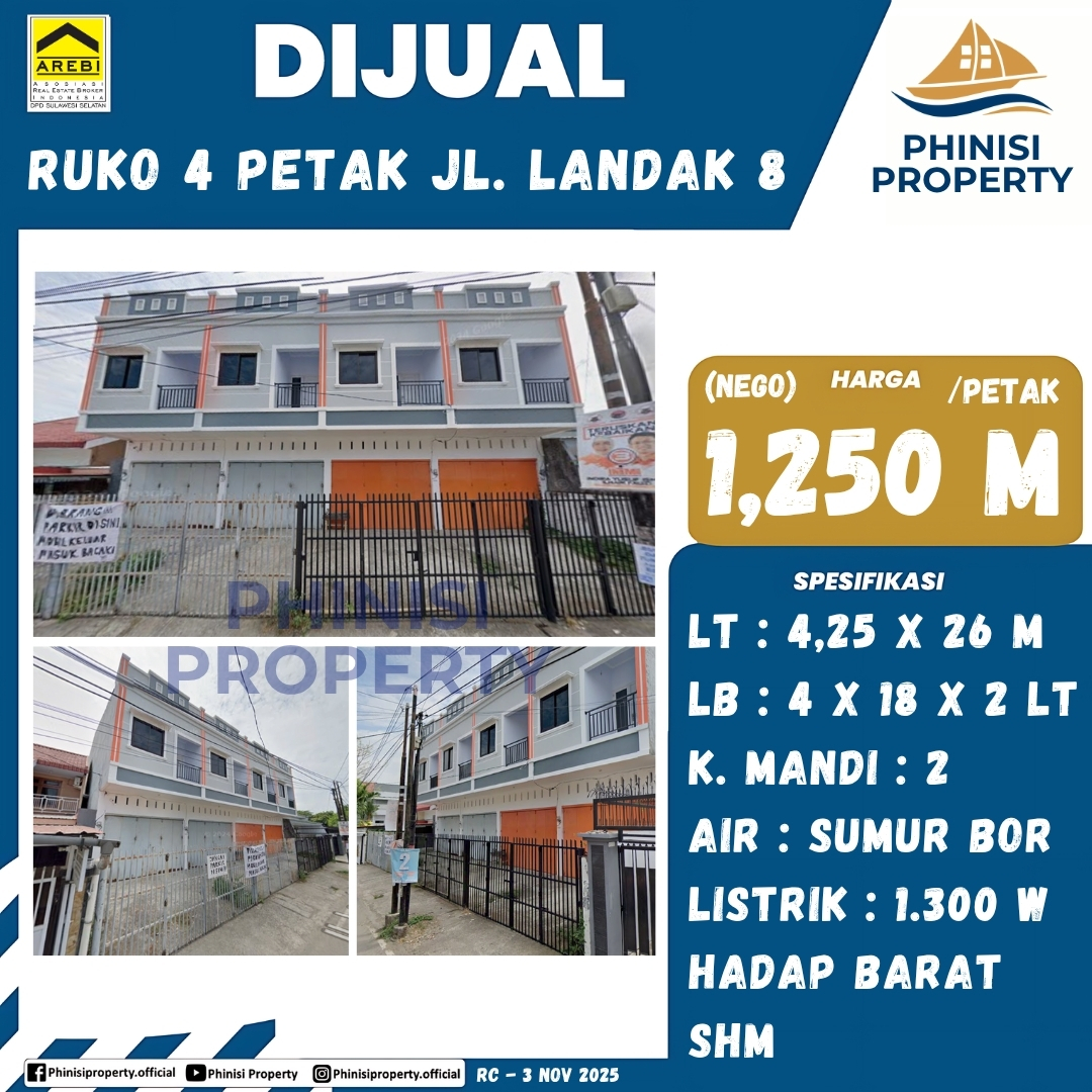 Dijual Ruko Landak Baru 4 Petak Berdampingan - Jalan Landak Baru Lorong 8, Pabbaeng-Baeng, Pa'baeng-Baeng, Tamalate, Makassar, Sulawesi Selatan, Sulawesi, 90132, Indonesia