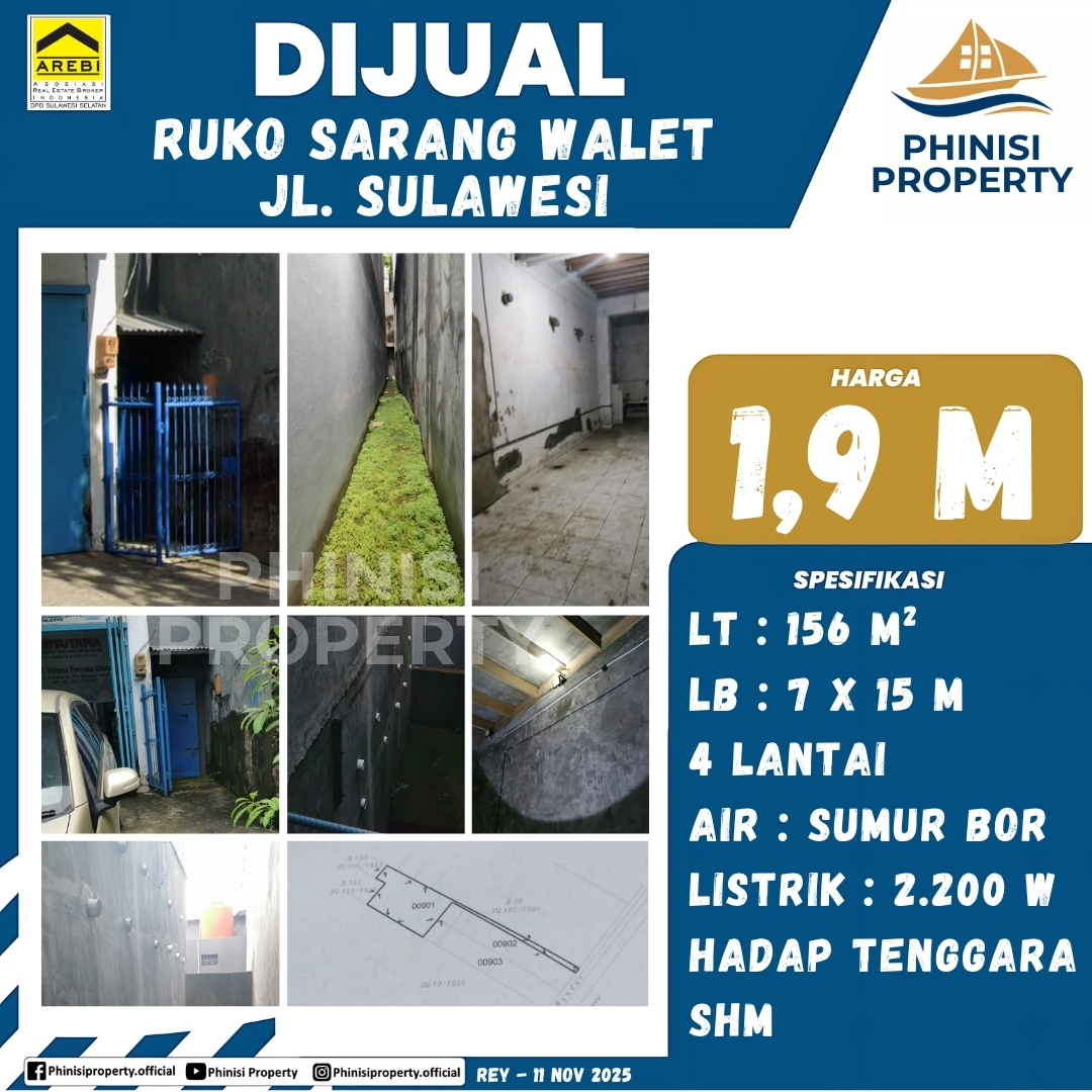 Tersedia untuk dijual, sebuah properti multifungsi yang unik dan berpotensi tinggi, yaitu Ruko Sarang Walet di Jalan Sulawesi. Properti ini sangat strategis karena berada di kawasan pusat kota dan menawarkan peluang investasi di sektor properti dan hasil panen walet. Ruko ini memiliki Luas Tanah 156 M² dan Luas Bangunan 7 x 15 meter, dibangun secara vertikal hingga 4 Lantai, memaksimalkan ruang untuk pemanfaatan bisnis. Properti dilengkapi fasilitas dasar berupa pasokan air Sumur Bor dan daya listrik 2.200 Watt. Orientasi ruko menghadap Tenggara, dan yang terpenting, legalitas properti ini terjamin aman dengan sertifikat SHM (Sertifikat Hak Milik). Lokasi di Jalan Sulawesi dikenal sebagai area komersial yang ramai, memberikan nilai tambah bagi properti yang jarang ditemukan ini.