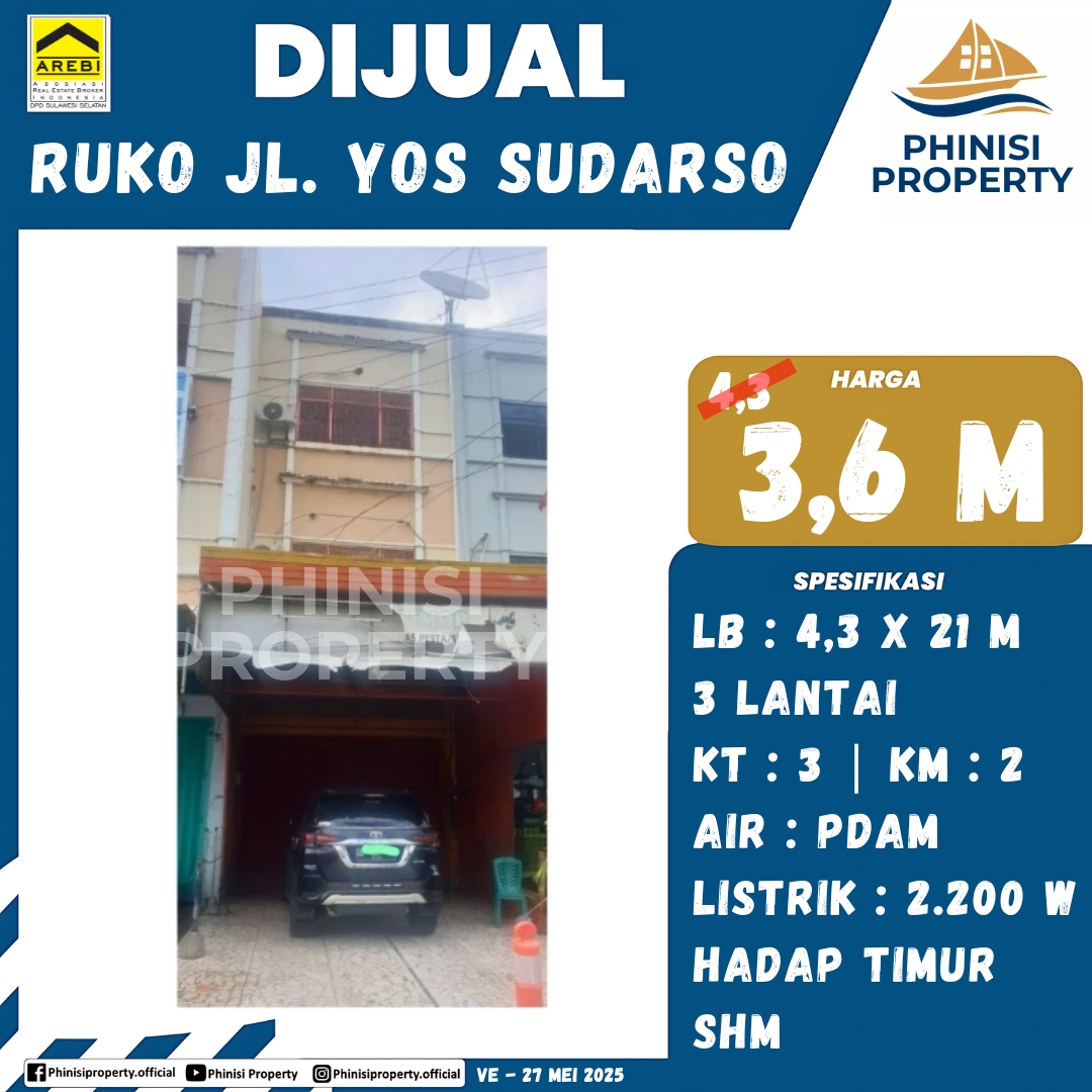 Dijual Ruko Strategis 3 Lantai di Jl. Yos Sudarso – Peluang Bisnis di Lokasi Ramai!