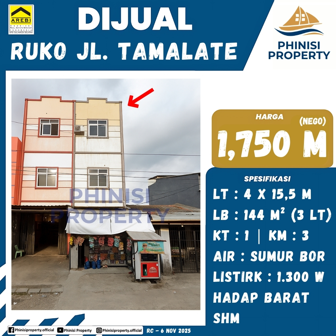 Dijual Ruko Tamalate 1 - Jalan Tamalate, Perumnas Tamalate, Bonto Makkio, Rappocini, Makassar, Sulawesi Selatan, Sulawesi, 90222, Indonesia
