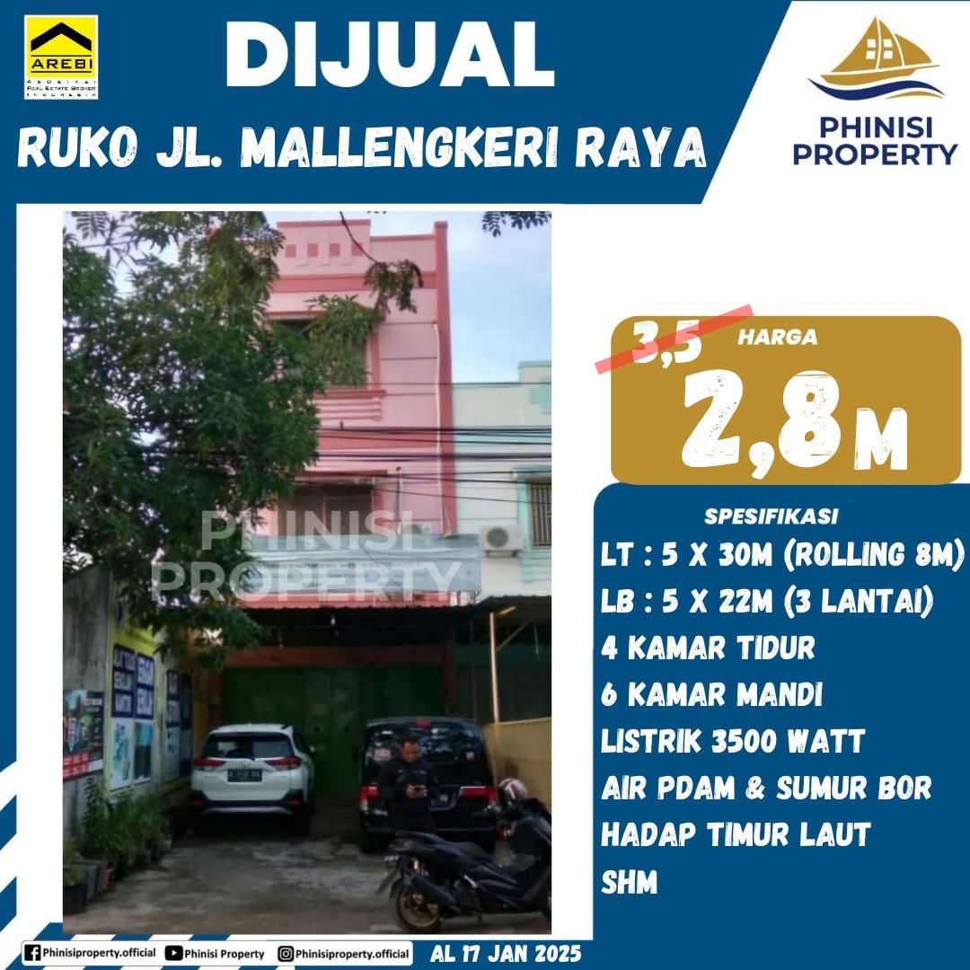 Dijual Ruko tengah kota Jl. Mallengkeri Raya– Lokasi Strategis, Cocok Usaha & Kantor