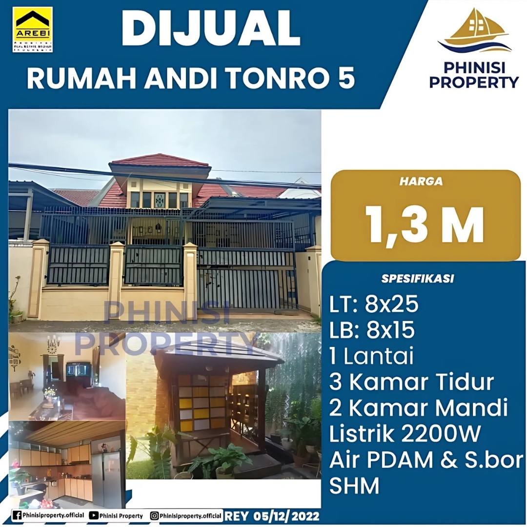 Dapatkan hunian nyaman di Jalan Andi Tonro 5, yang menawarkan rumah minimalis satu lantai dengan desain modern. Properti ini memiliki luas tanah 8×25 meter dan luas bangunan 8×15 meter, terdiri dari tiga kamar tidur dan dua kamar mandi yang ideal untuk keluarga. Fasilitas pendukung mencakup listrik 2.200 watt dan pasokan air dari PDAM serta sumur bor. Status kepemilikan SHM menjamin legalitas properti. Jangan lewatkan kesempatan untuk memiliki rumah yang strategis dan siap huni ini.