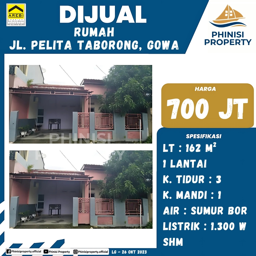 Tersedia rumah minimalis yang nyaman di lokasi strategis Jalan Pelita Borong, Gowa. Dengan luas tanah 162 meter persegi, rumah satu lantai ini memiliki tiga kamar tidur dan satu kamar mandi. Dilengkapi dengan air sumur bor dan daya listrik sebesar 1.300 watt, rumah ini siap huni dan ideal untuk keluarga kecil atau pasangan muda yang mencari hunian nyaman di lokasi yang tenang namun mudah diakses.