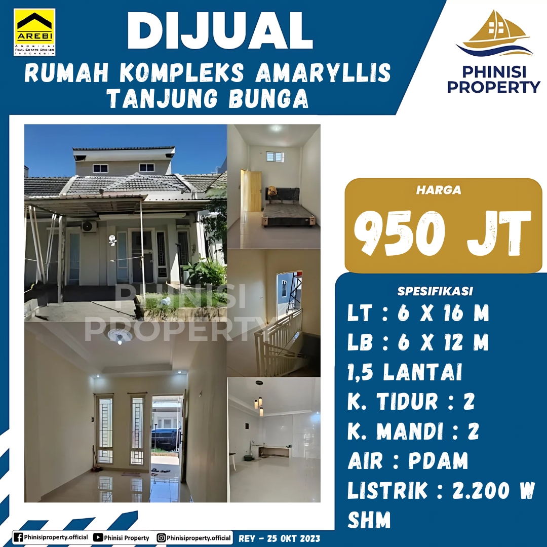 Miliki segera rumah modern di Kompleks Amaryllis, Tanjung Bunga, yang menawarkan hunian nyaman dan strategis. Rumah ini memiliki 1,5 lantai dengan luas tanah 6×16 meter dan luas bangunan 6×12 meter. Properti ini dilengkapi dengan dua kamar tidur dan dua kamar mandi, menjadikannya pilihan yang ideal untuk keluarga kecil atau pasangan muda. Dengan pasokan air PDAM dan daya listrik 2.200 watt, rumah ini siap huni. Status kepemilikan SHM menjamin legalitas properti ini. Jangan lewatkan kesempatan untuk memiliki hunian di lokasi yang premium ini.