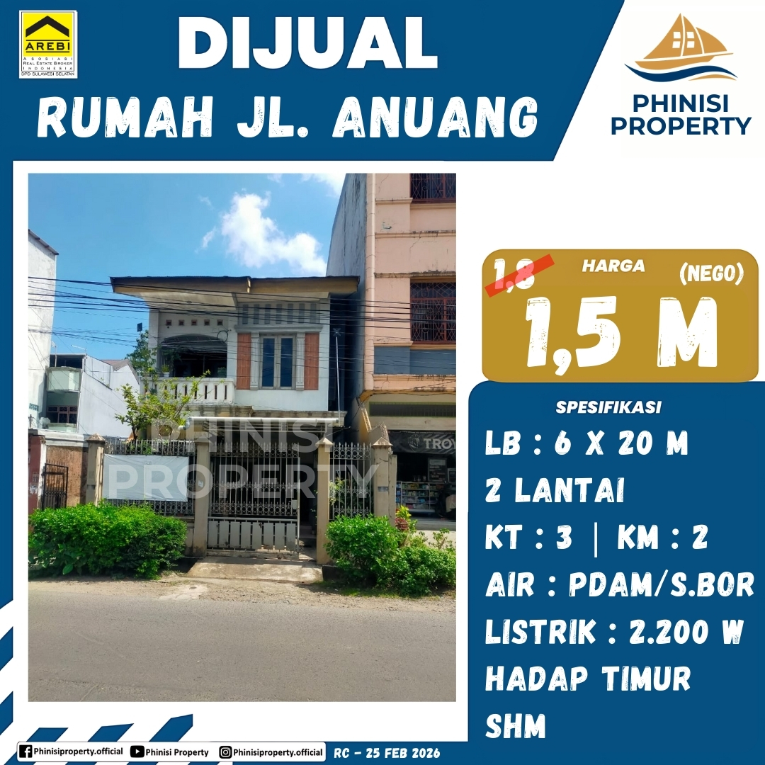 Dijual Rumah Jalan Anuang Makassar - Jalan Anuang, Maricaya Selatan, Mamajang, Makassar, Sulawesi Selatan, Sulawesi, 90111, Indonesia