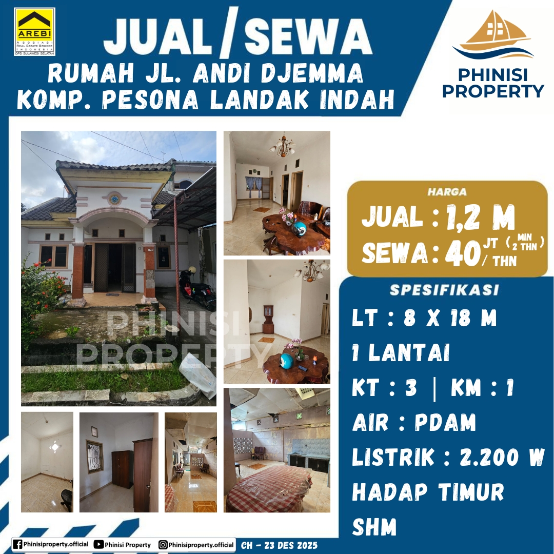 Dijual/Disewa Rumah Jl. Andi Djemma Kompleks Pesona Landak Indah - Jalan Andi Djemma, Mamajang Dalam, Mamajang, Makassar, Sulawesi Selatan, Sulawesi, 90221, Indonesia