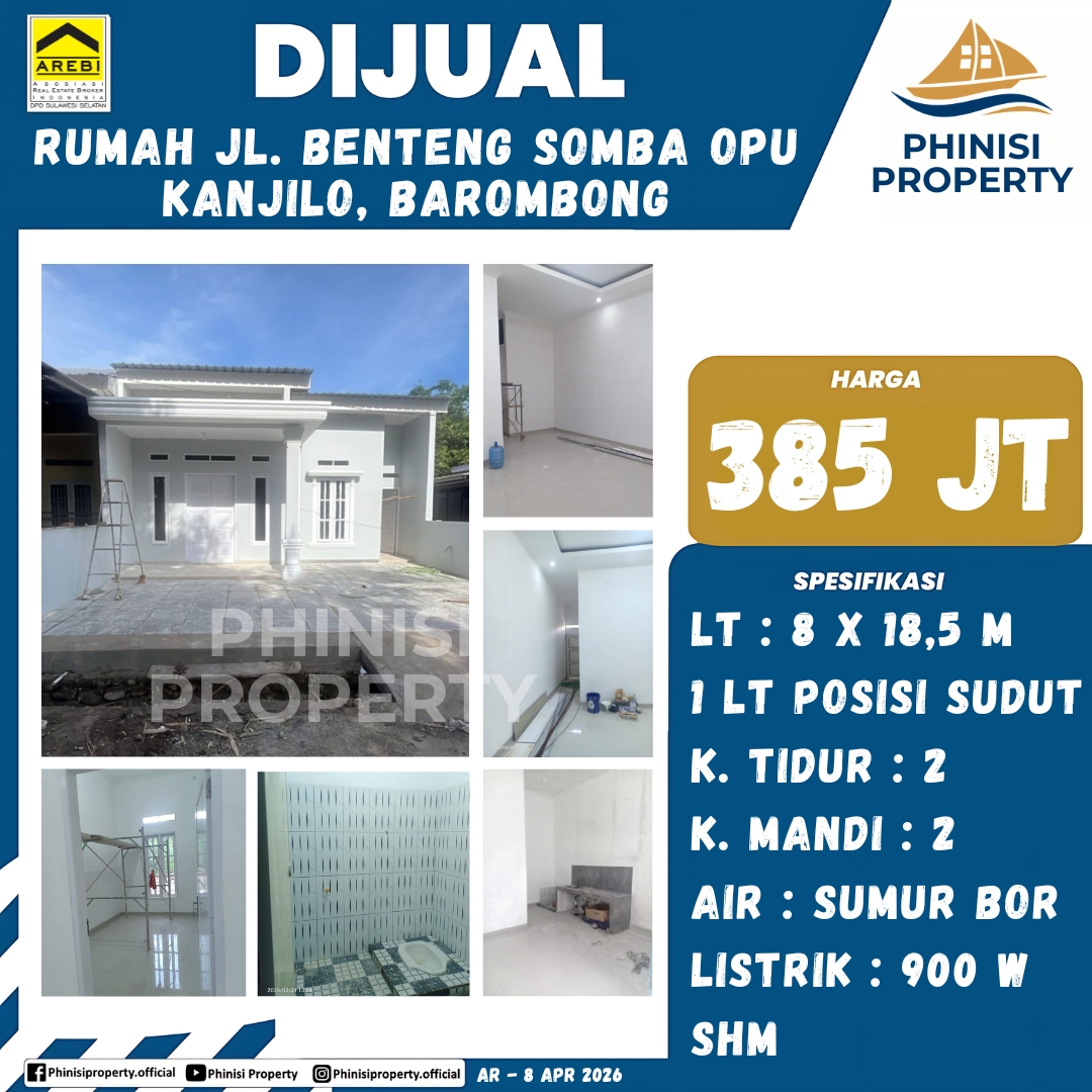 Dijual Rumah Jl. Benteng Somba Opu, Kanjilo, Barombong - Benteng Somba Opu, Barombong, Gowa, Sulawesi Selatan, Sulawesi, Indonesia