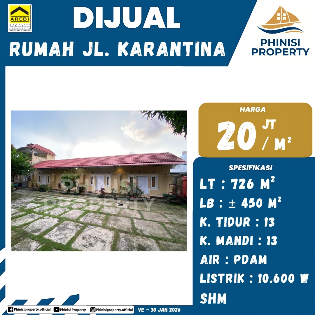 Dijual Rumah Jl. Karantina - Jalan Karantina, Sinrijala, Panakkukang, Makassar, Sulawesi Selatan, Sulawesi, 90152, Indonesia